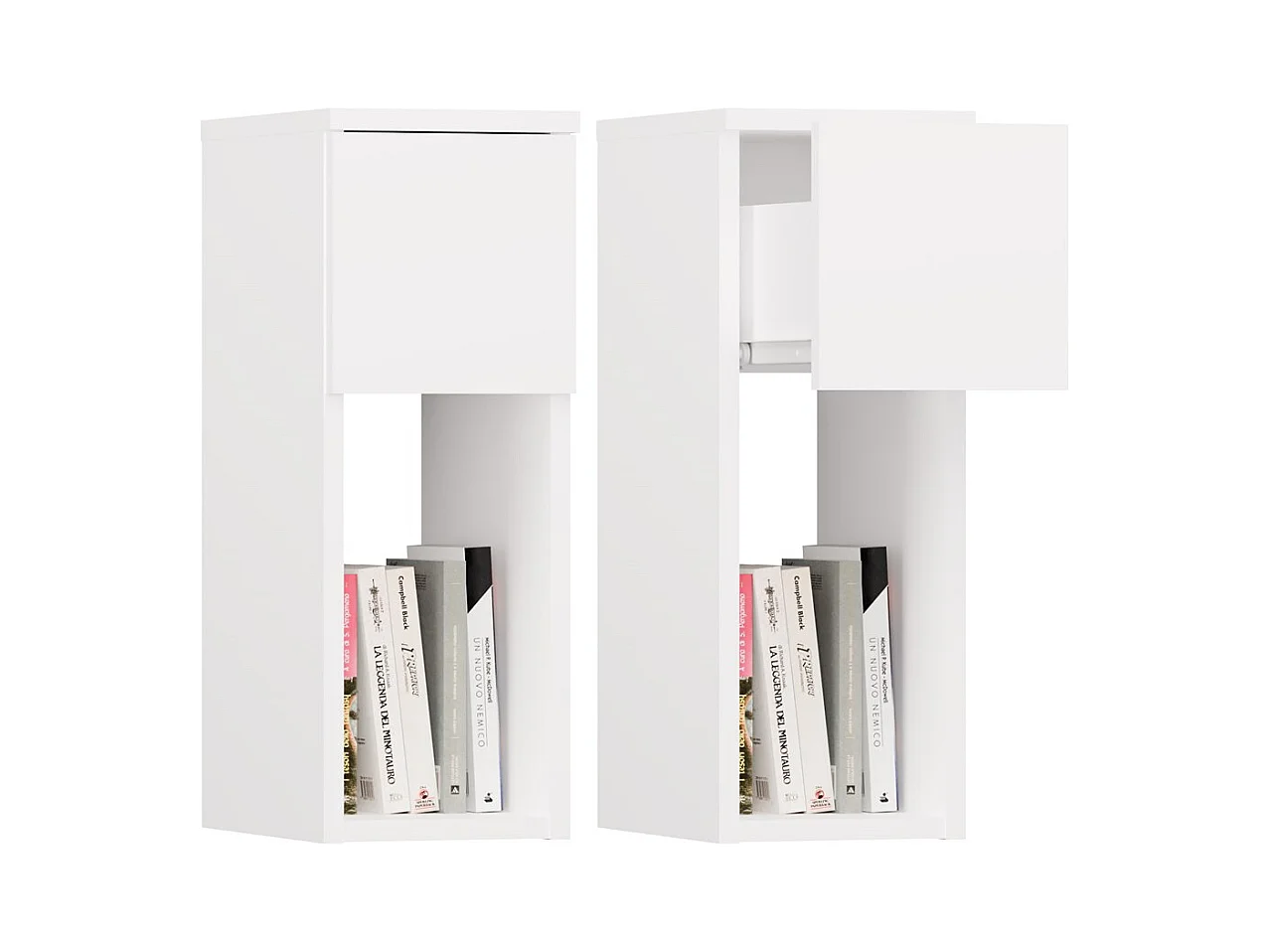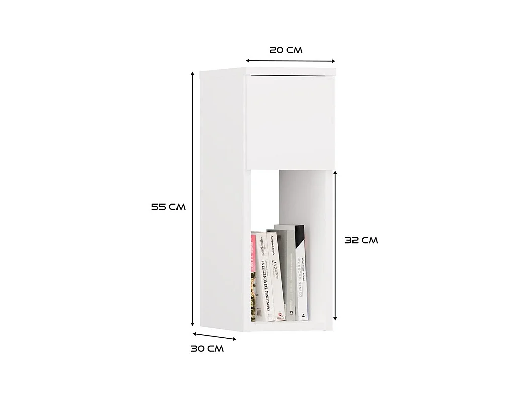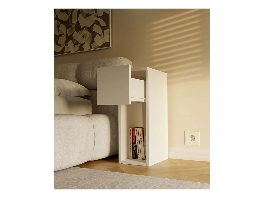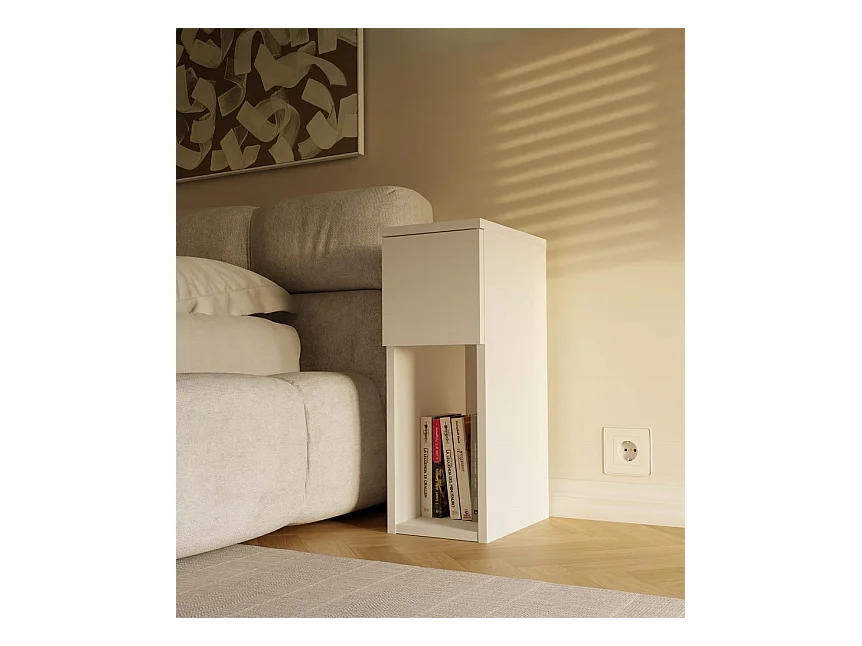GALAX - Table de chevet blanche moderne avec tiroir et étagère 20x30x55 cm