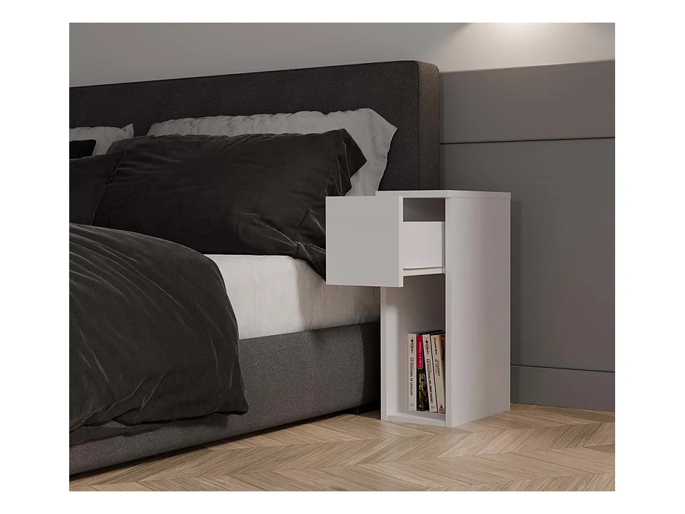 Table de chevet 1 porte charnière gauche MDF Blanc - Romance Interior's