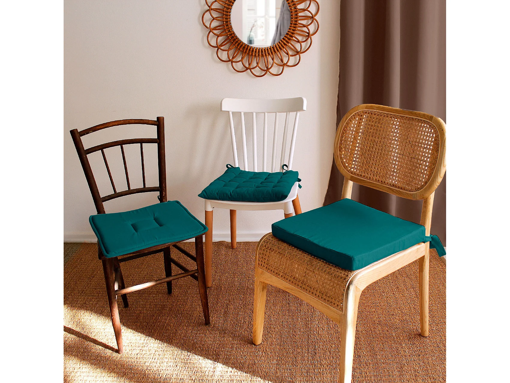 Galette de Chaise Uni "Panama" 40x40cm Émeraude