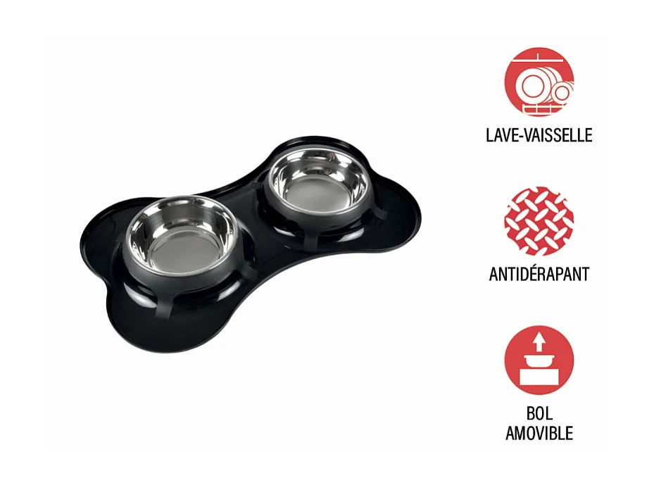 Gamelle Double pour Chien "Forme Os" 45cm Noir
