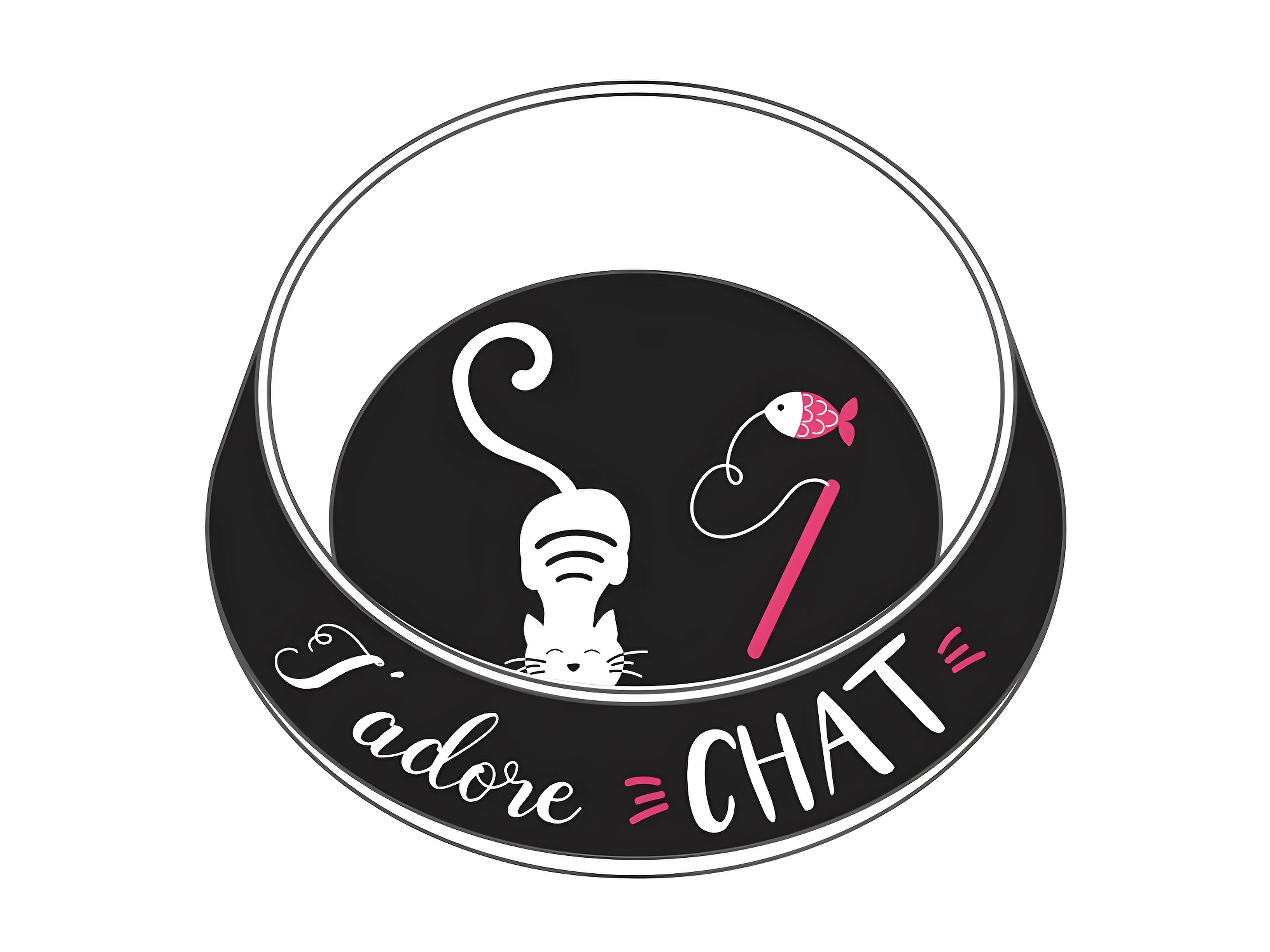 Gamelle pour Chat "J'adore" 19cm Noir & Blanc
