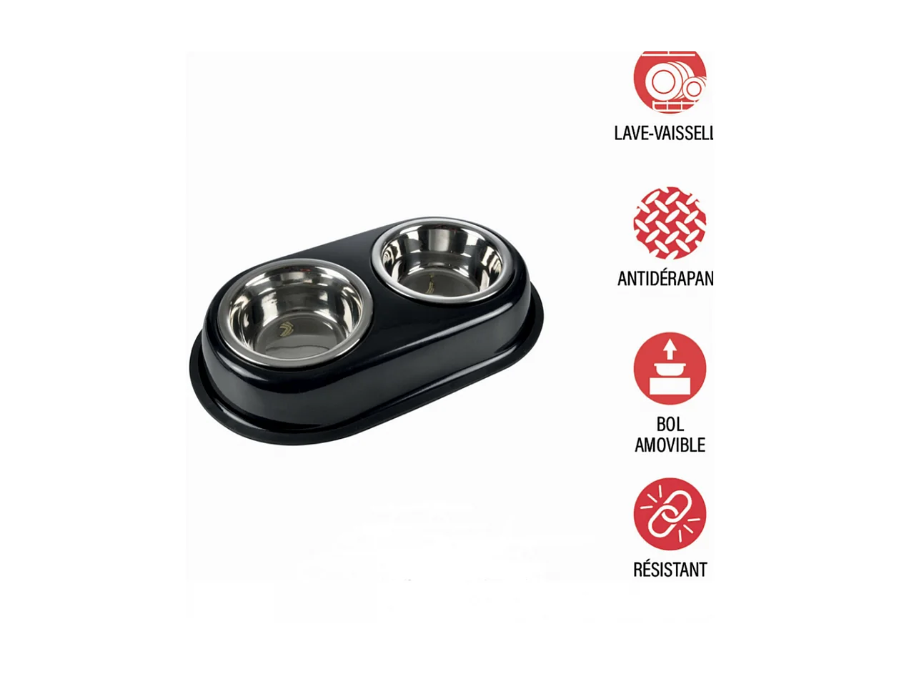 Gamelle pour Chien & Chat "Double" 35cm Noir