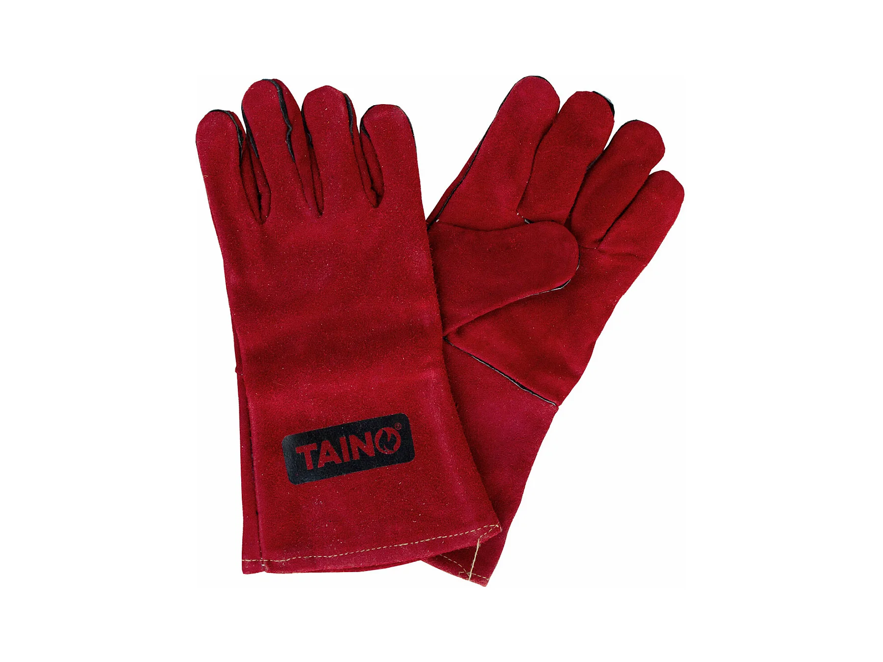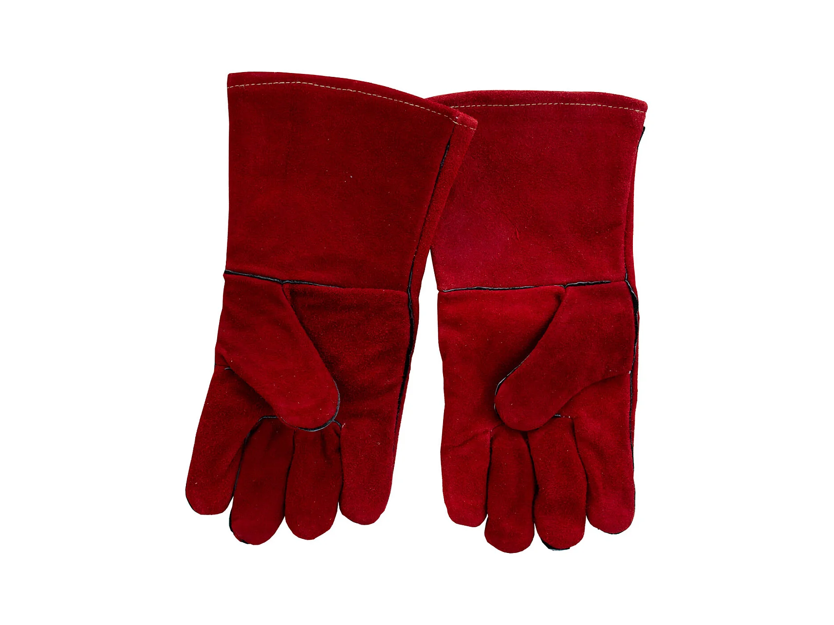 Gants de barbecue en cuir résistant à la chaleur avec doigts taille universelle rouge