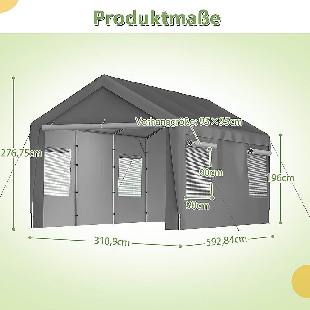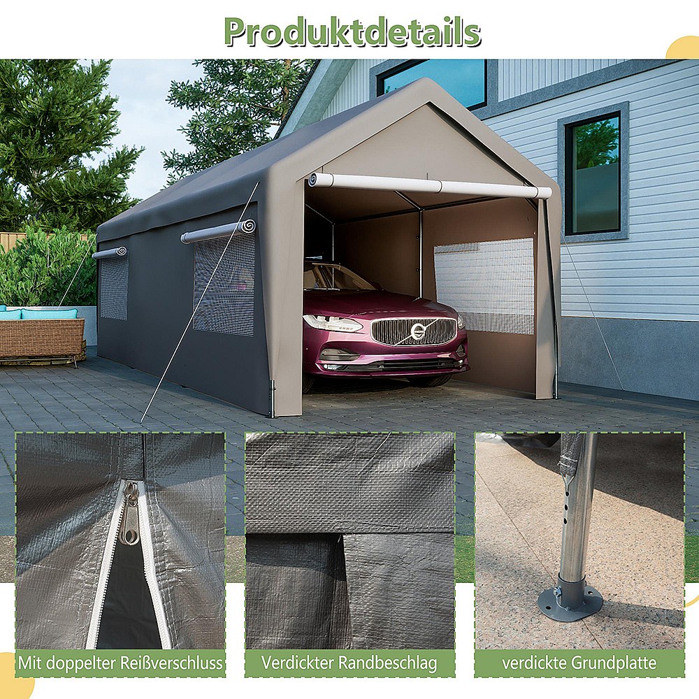 Garage abri voiture 3x6 mètres résistant hiver avec fenêtre enroulable et toit amovible pour protection SUV camion extérieur