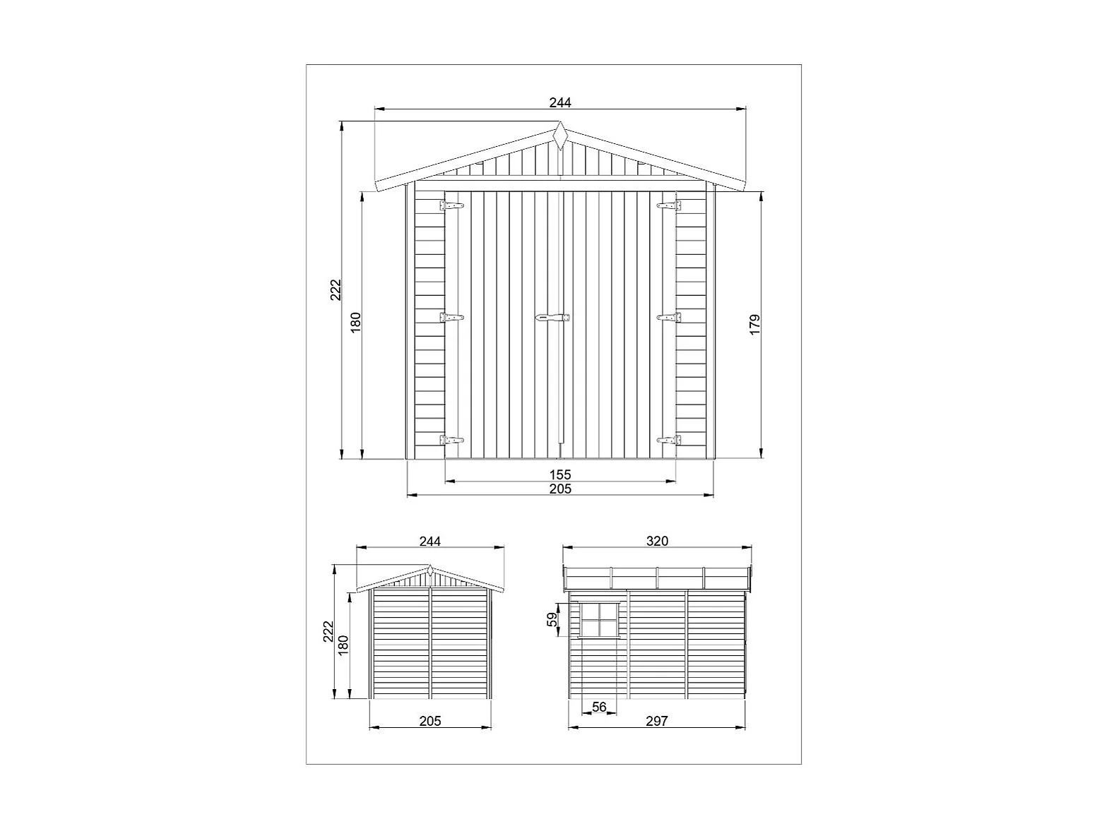 Garage en bois naturel - H222x244x320 cm/ 6 m² - M105