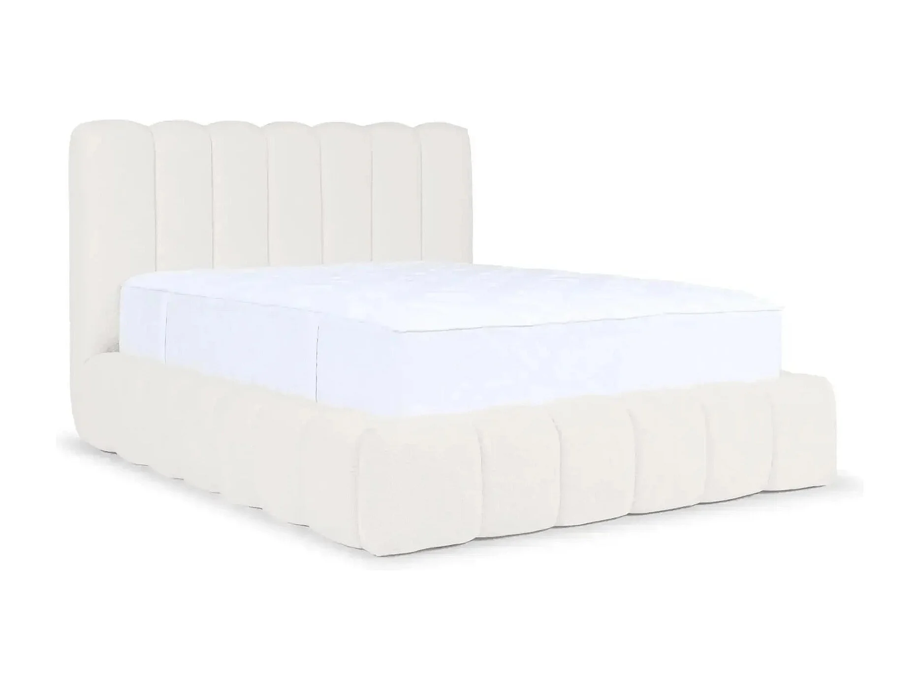 GARANCE - Lit coffre tissu chenille 140x200cm - Blanc