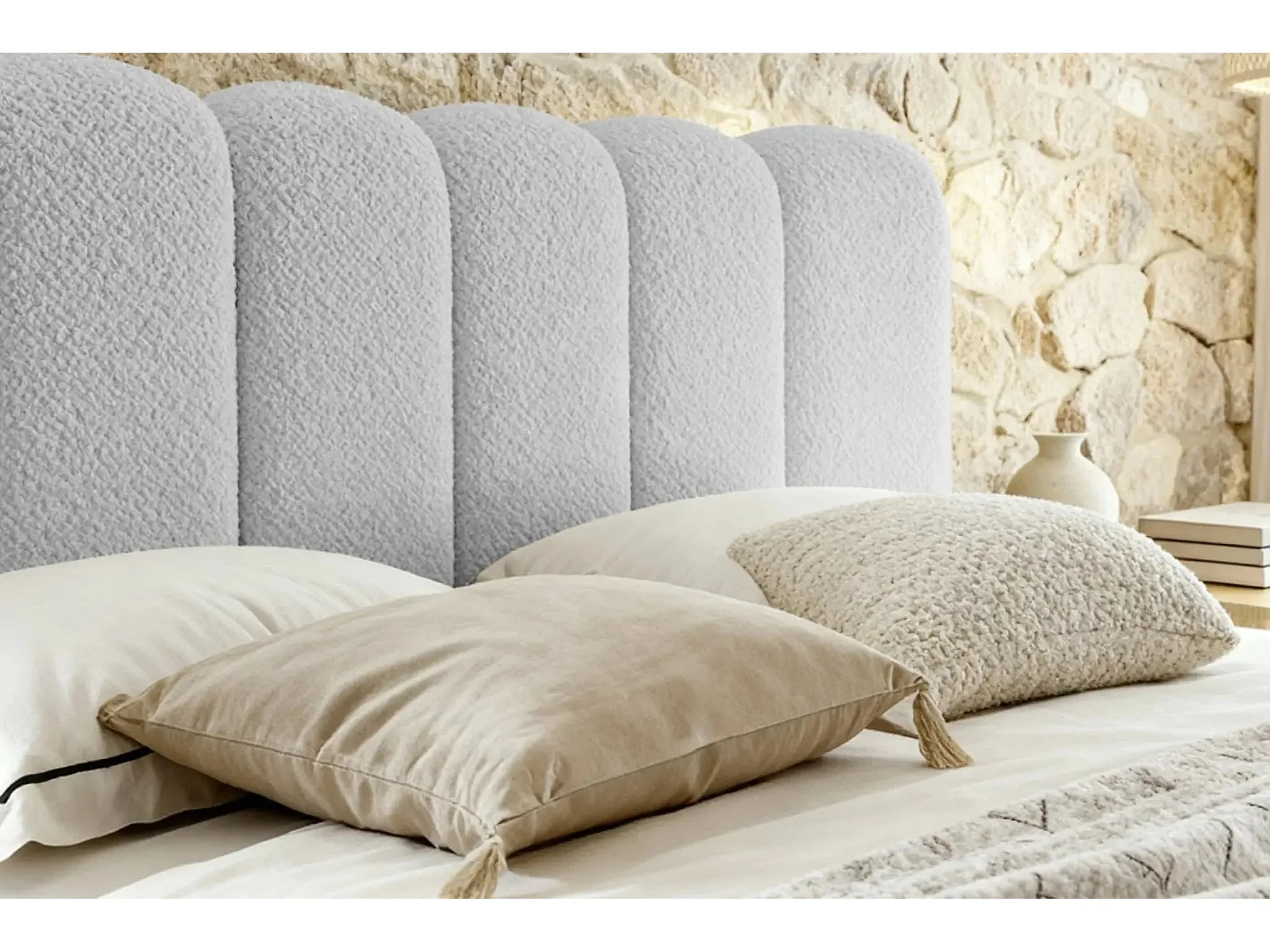 GARANCE - Lit coffre tissu chenille 180x200cm - Gris clair