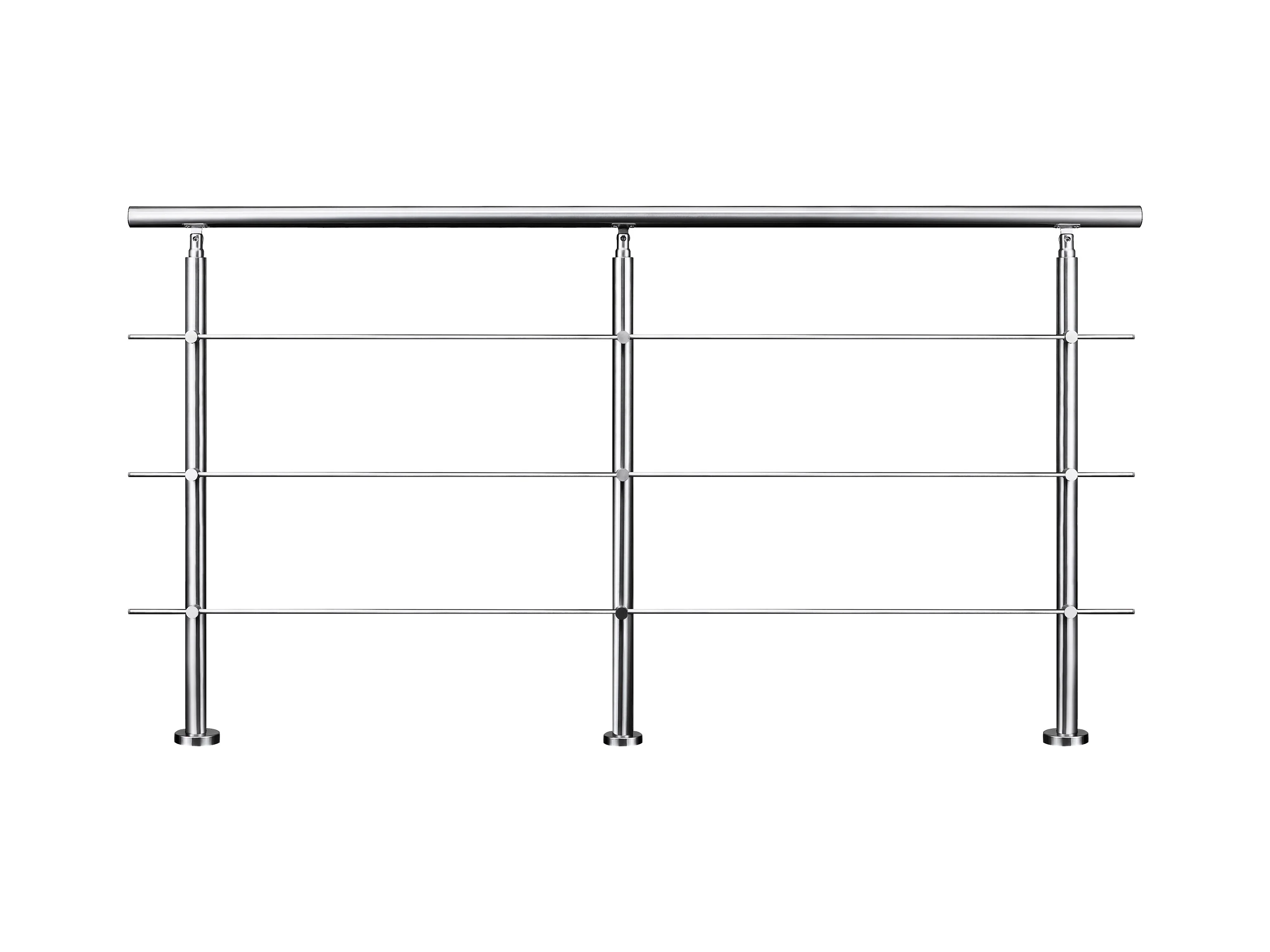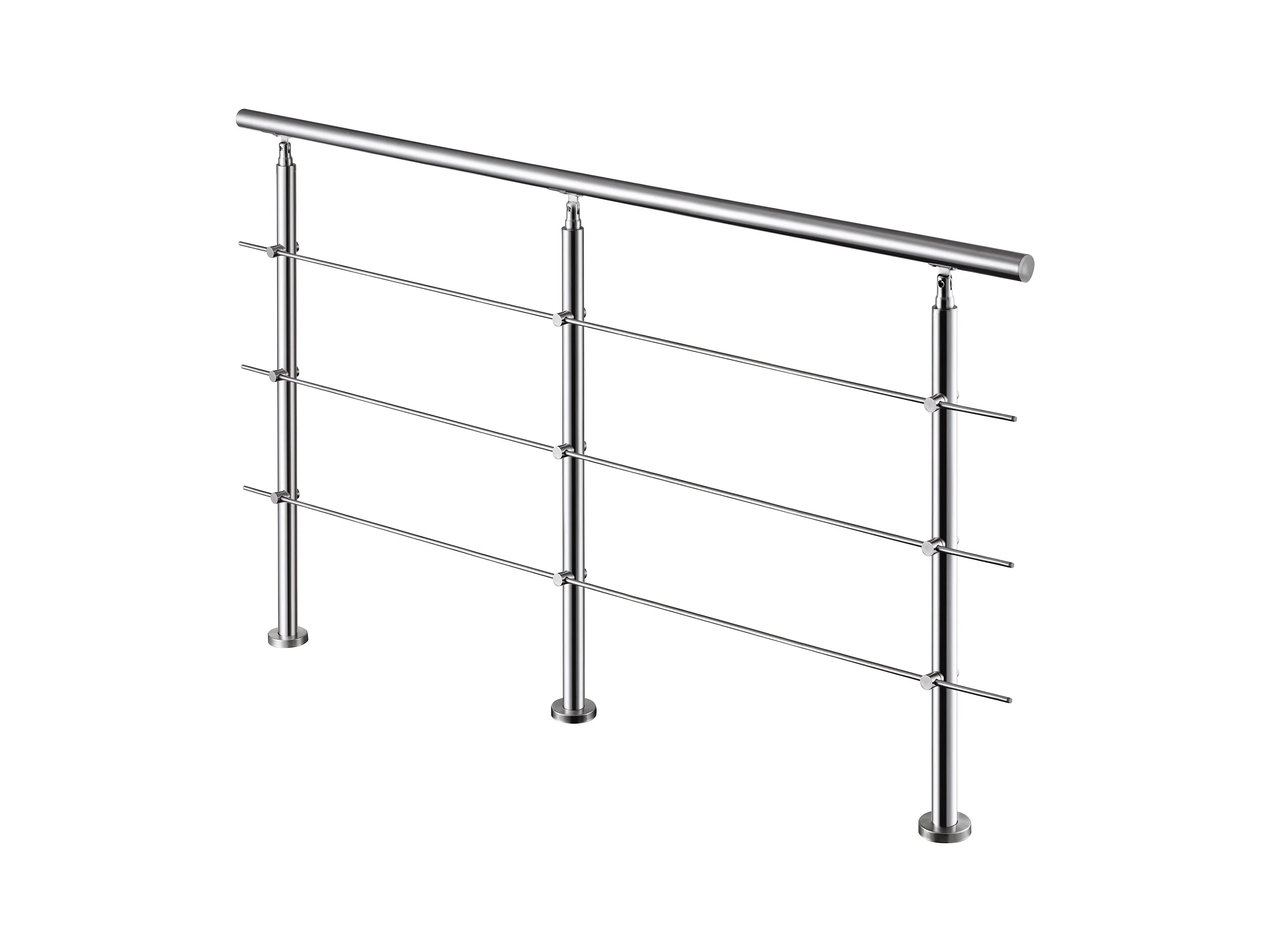 Garde-corps 200cm avec main courante, en acier inoxydable 201, pour intérieur et extérieur, garde-corps avec 3 traverses