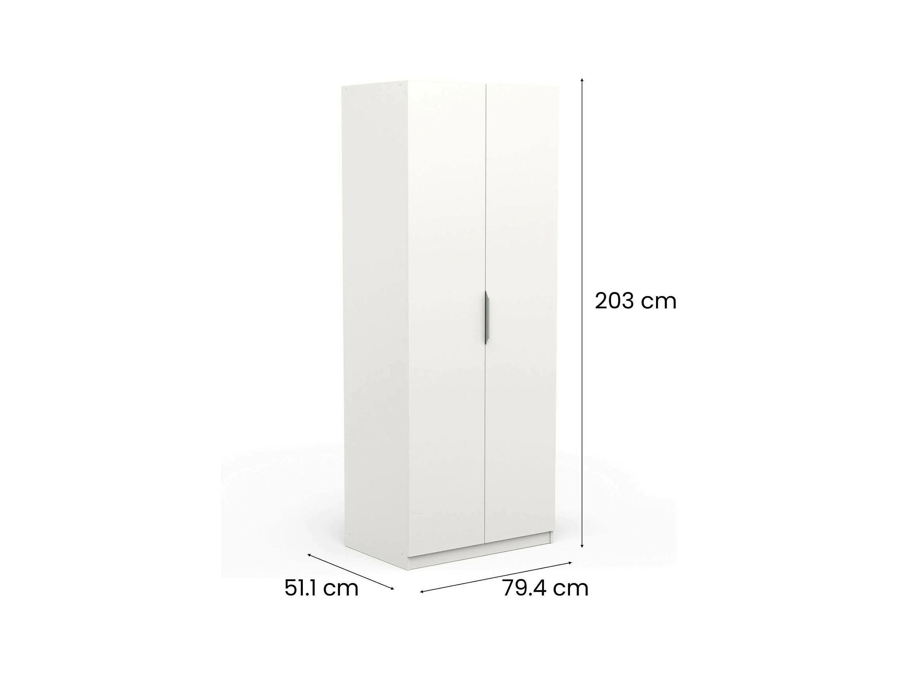 Garde-robe 2 portes Djakobsso, Meubles de chambre, Penderie de plain-pied, Placard à vêtements, 79x51 h203 cm, Blanc mat
