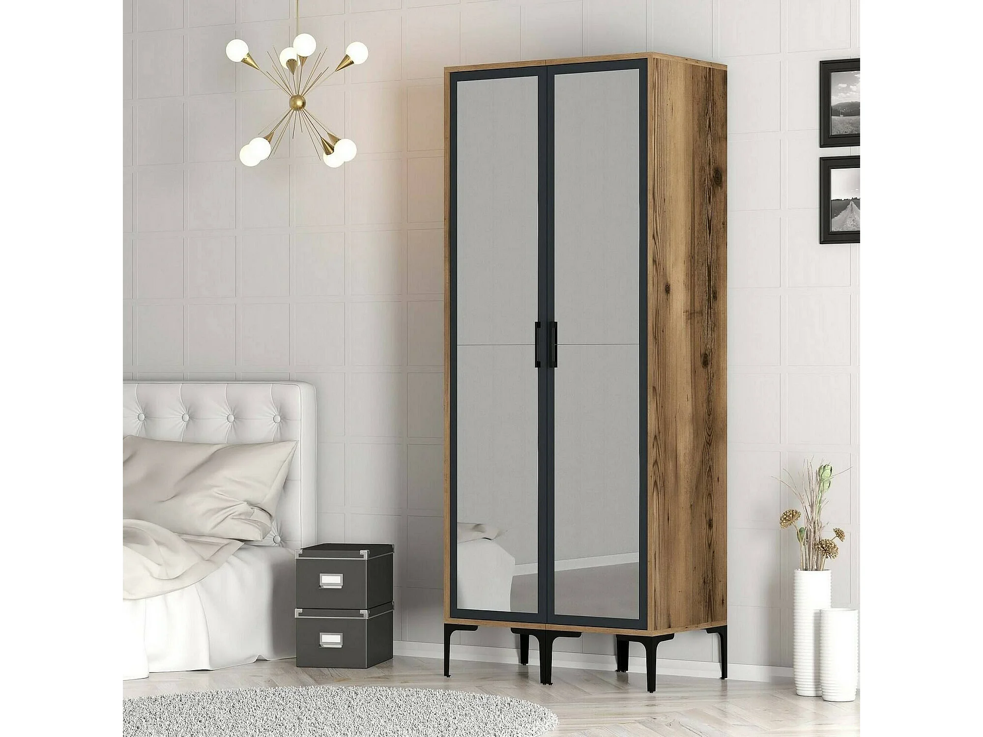 Garde-robe 2 portes Dpret, Meubles de chambre, Penderie de plain-pied, Placard à vêtements, 80x201h48 cm, Noyer et Anthracite