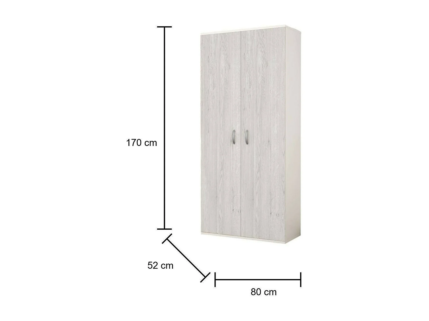 Garde-robe 2 portes Drafi, Meubles de chambre, Dressing avec portes, Armoire, Made in Italy, 80x52h170 cm, Blanc et chêne