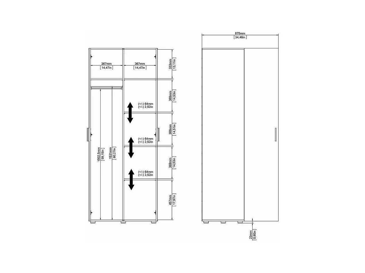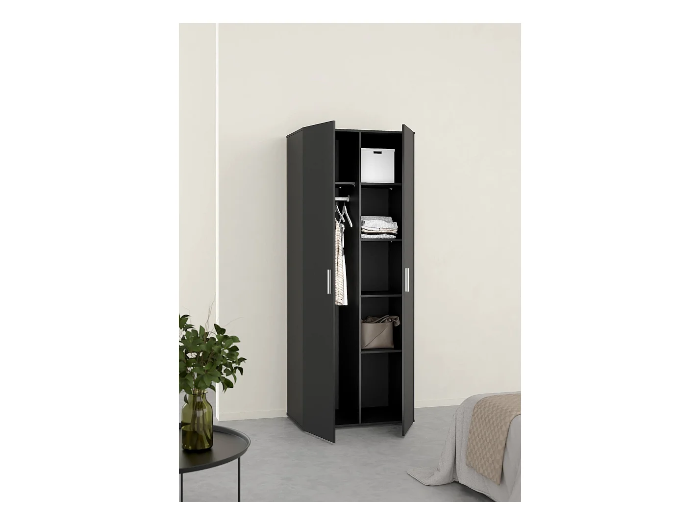 Garde-robe 2 portes Dscamacc, Meubles de chambre, Penderie de plain-pied, Placard à vêtements, 79x50 h201 cm, Noir