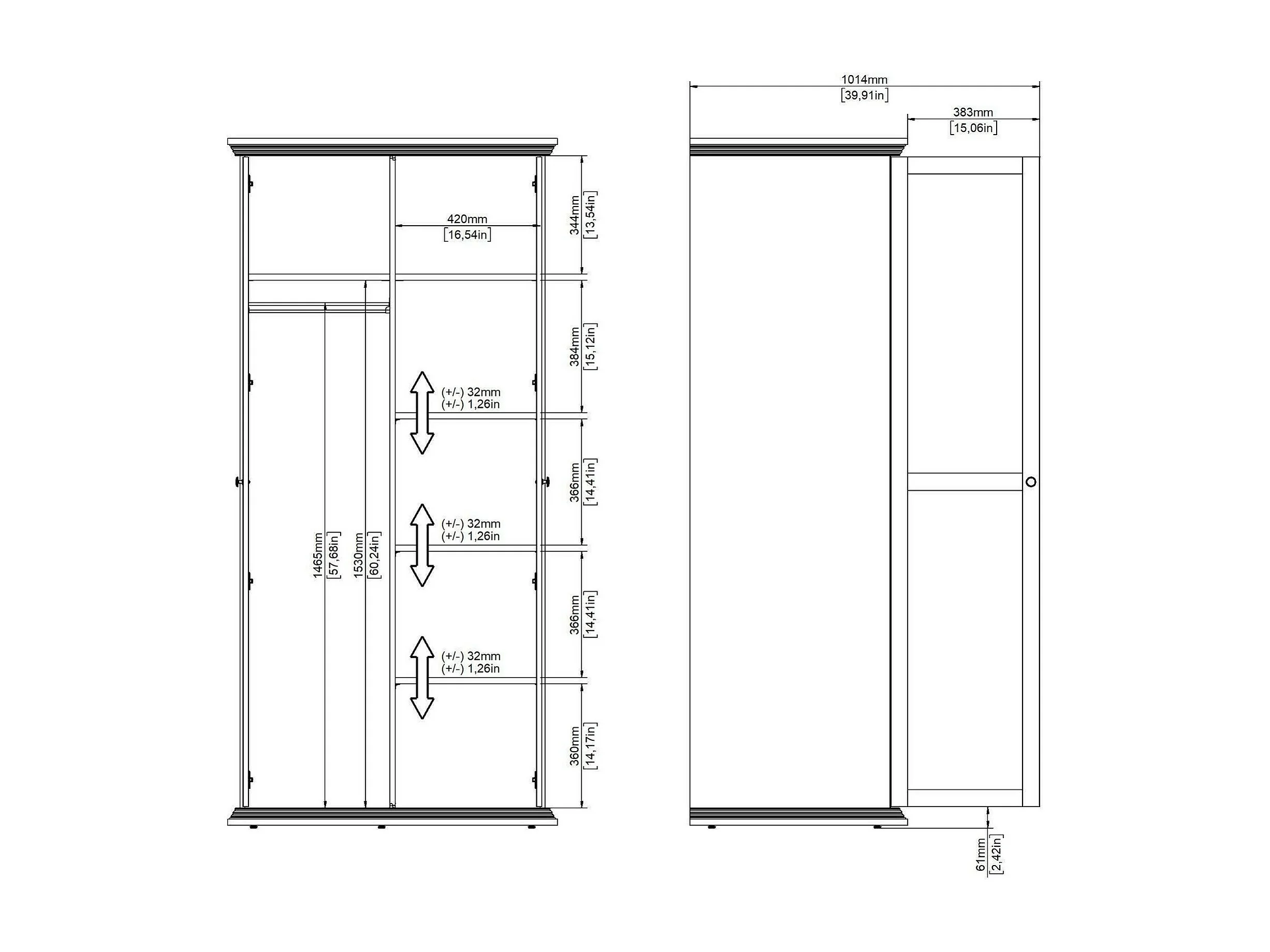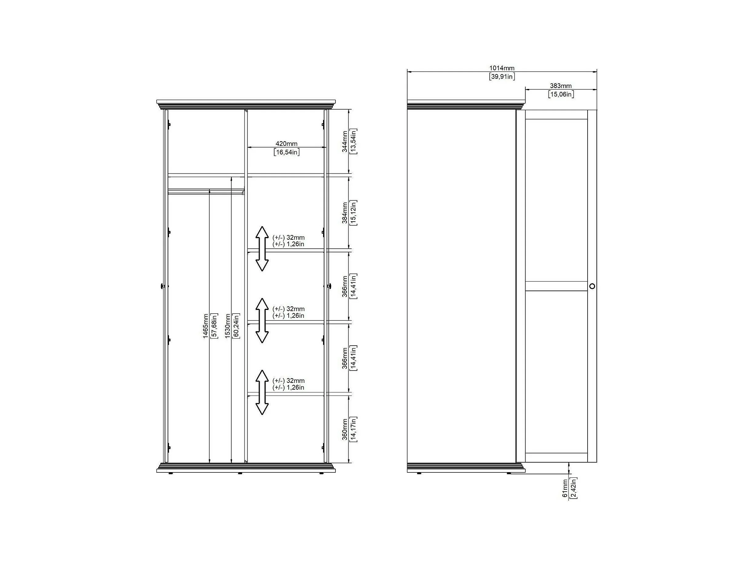 Garde-robe 2 portes Dscapol, Meubles de chambre, Penderie de plain-pied, Placard à vêtements, 96x63 h200 cm, Noir