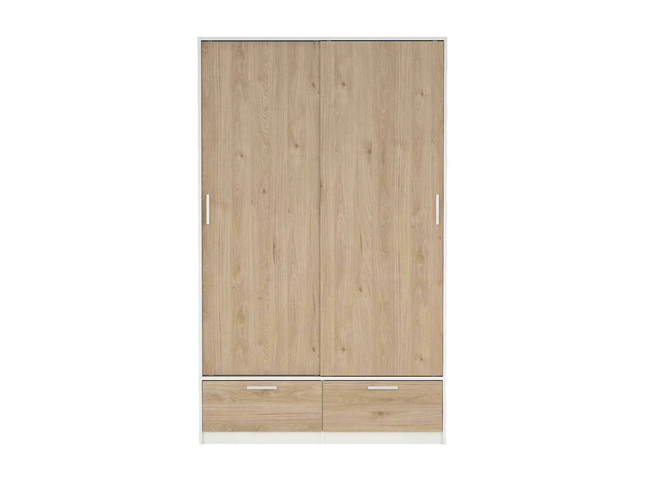Garde-robe 2 portes Dschoute, Meubles de chambre, Penderie de plain-pied, Placard à vêtements, 121x60 h200 cm, Blanc et Chêne clair