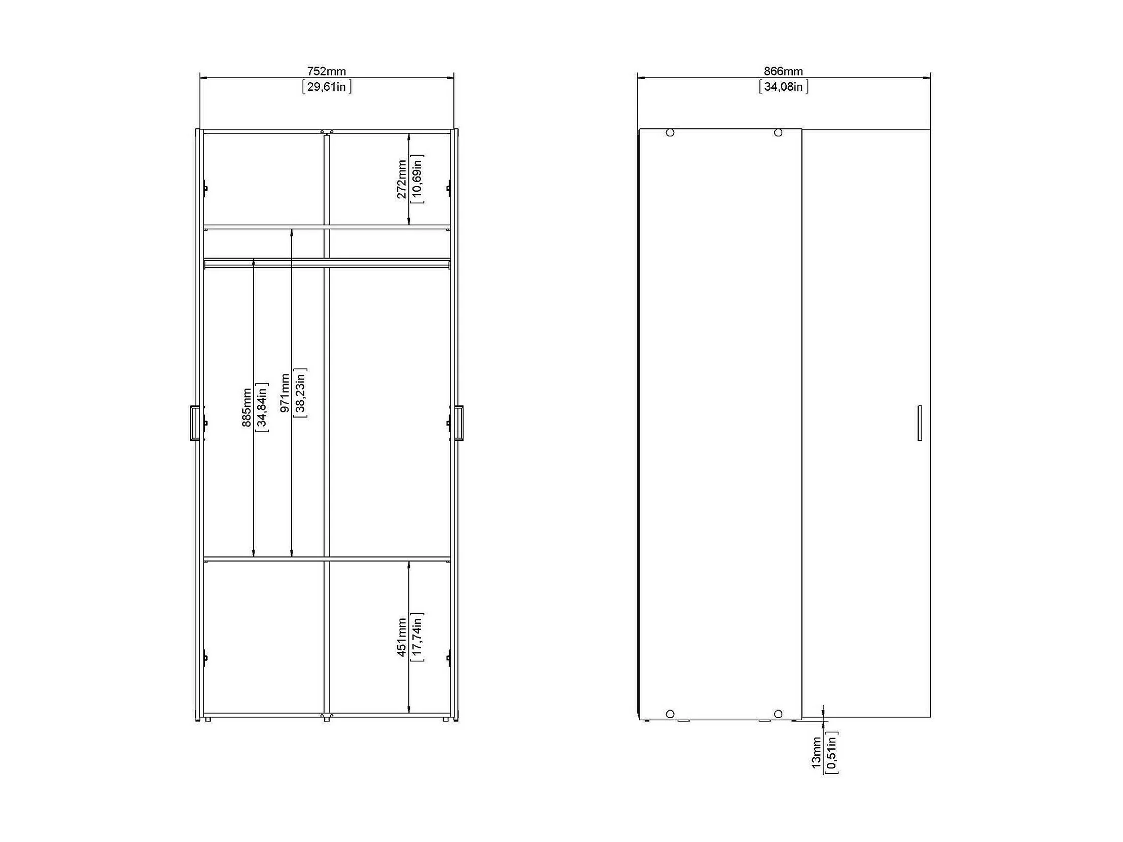 Garde-robe 2 portes Dsec, Meubles de chambre, Penderie de plain-pied, Placard à vêtements, 78x50 h175 cm, Blanc