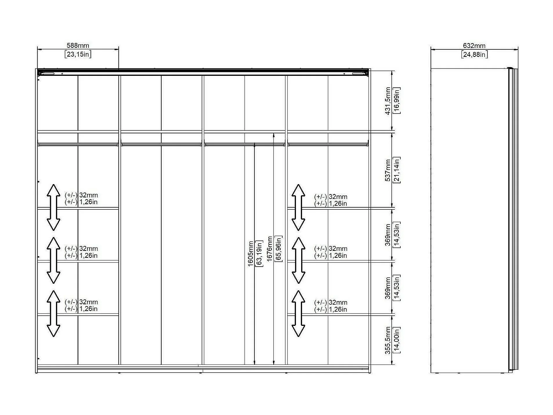 Garde-robe 2 portes Dstabil, Meubles de chambre, Penderie de plain-pied, Placard à vêtements, 243x61 h220 cm, Blanc