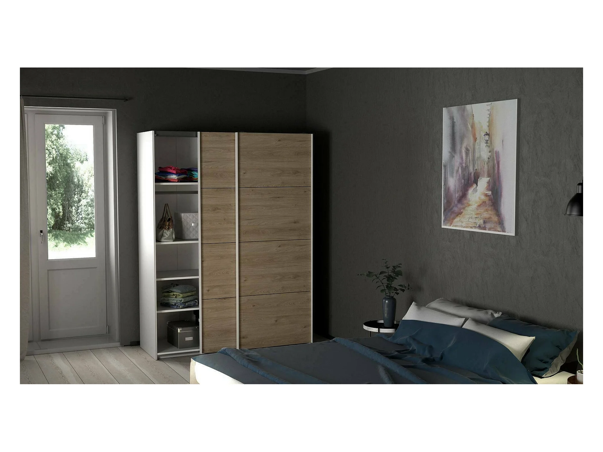 Garde-robe 2 portes Dstang, Meubles de chambre, Penderie de plain-pied, Placard à vêtements, 150x61 h200 cm, Blanc et Chêne clair