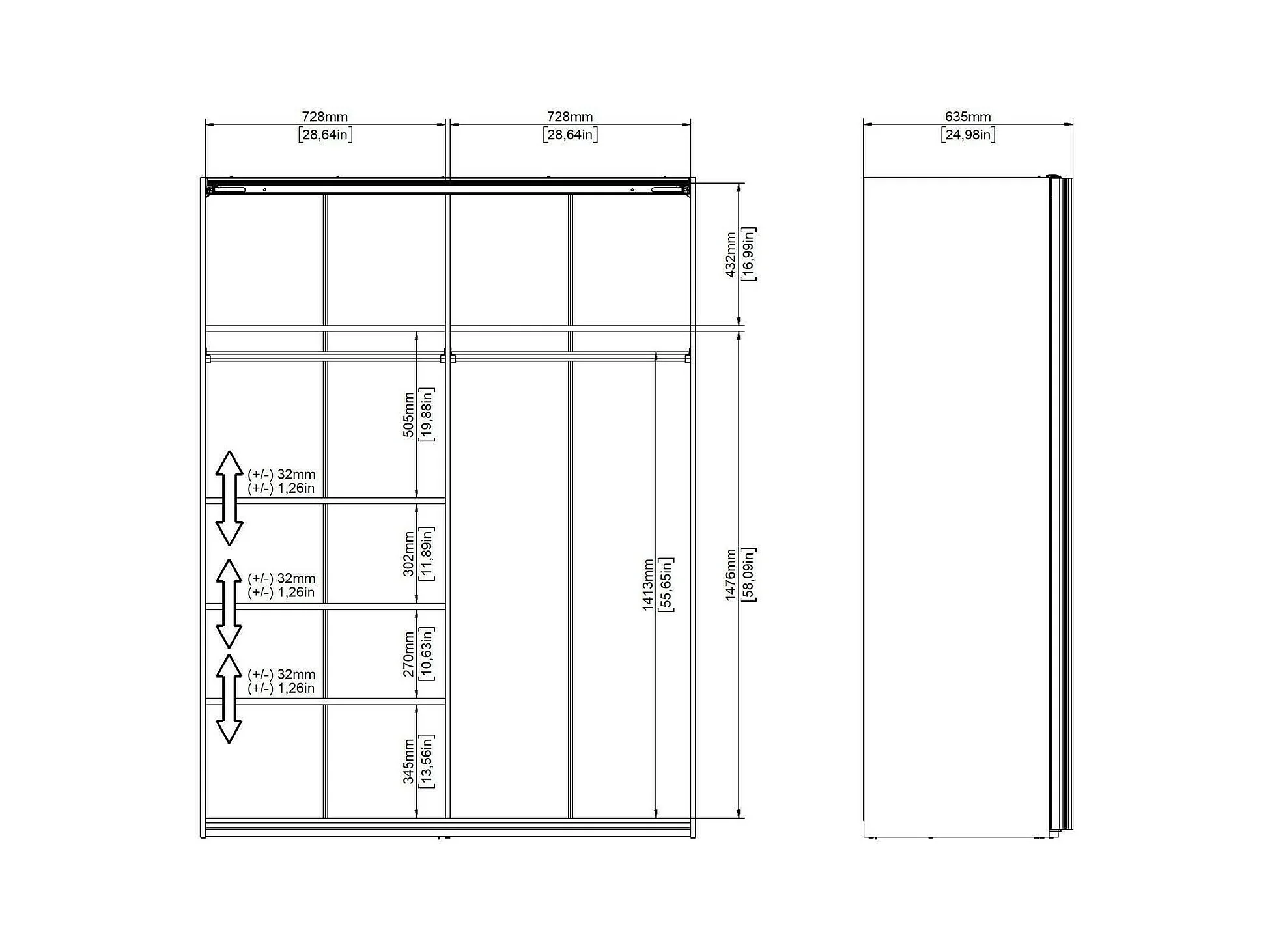 Garde-robe 2 portes Dstang, Meubles de chambre, Penderie de plain-pied, Placard à vêtements, 150x61 h200 cm, Blanc et Noir