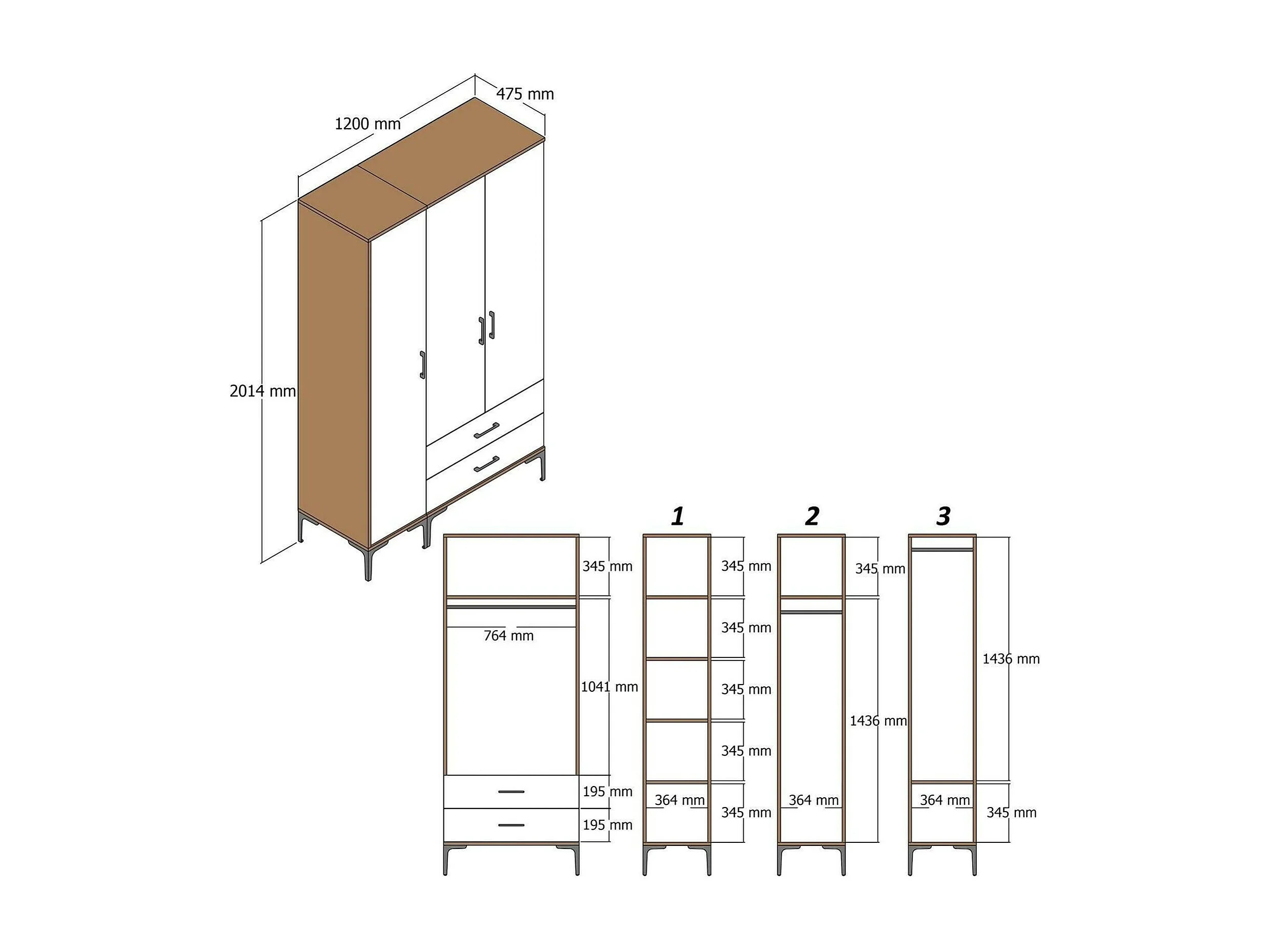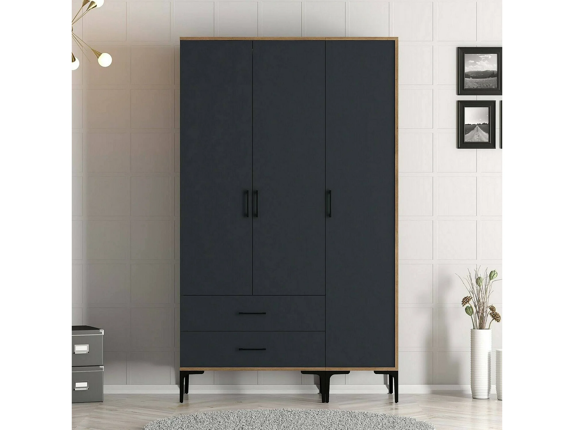 Garde-robe 3 portes Dangiull, Meubles de chambre, Penderie de plain-pied, Placard à vêtements, 120x201h48 cm, Noyer et Anthracite