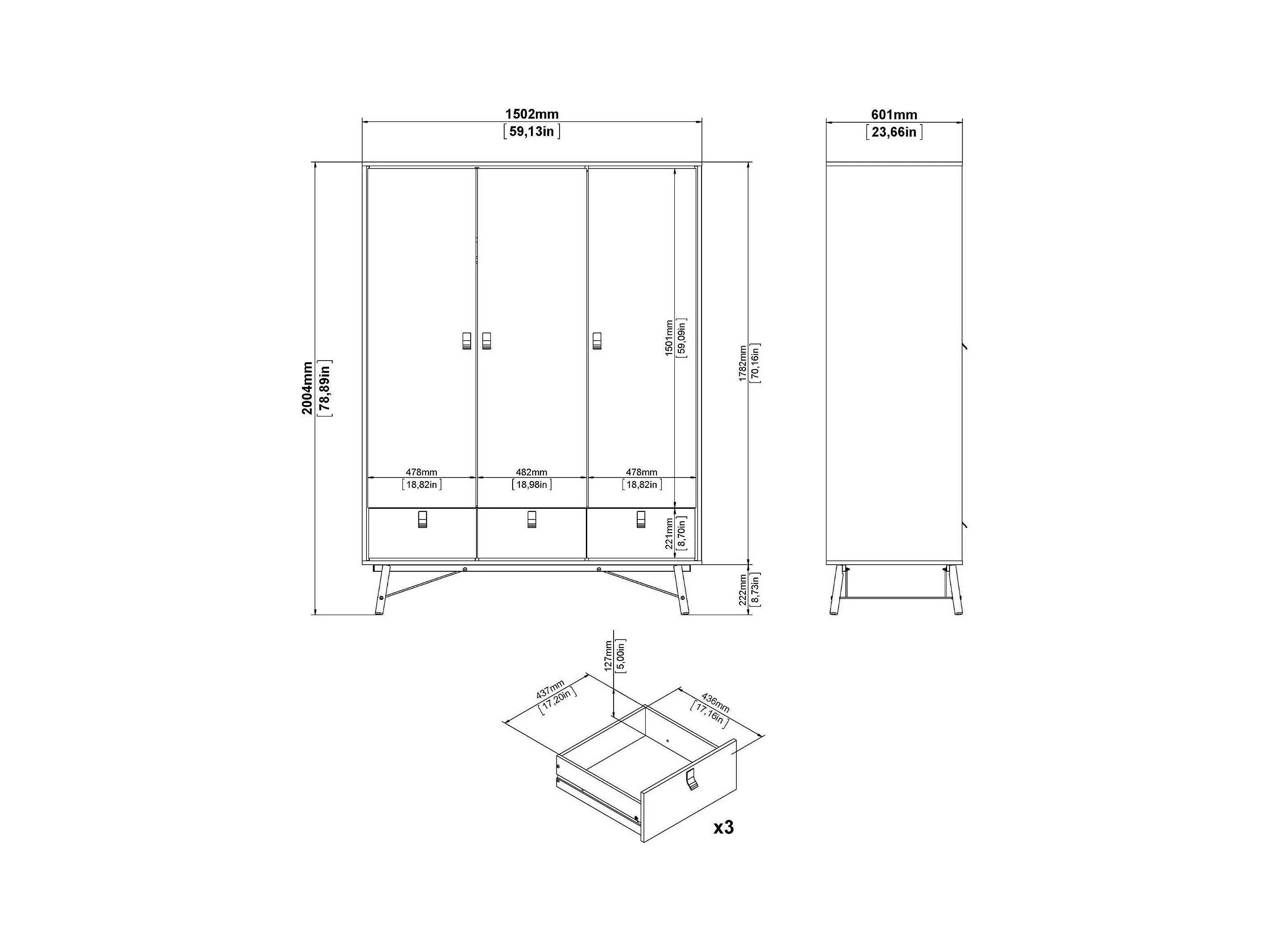 Garde-robe 3 portes Dsalvion, Meubles de chambre, Penderie de plain-pied, Placard à vêtements, 150x60 h200 cm, Chêne clair