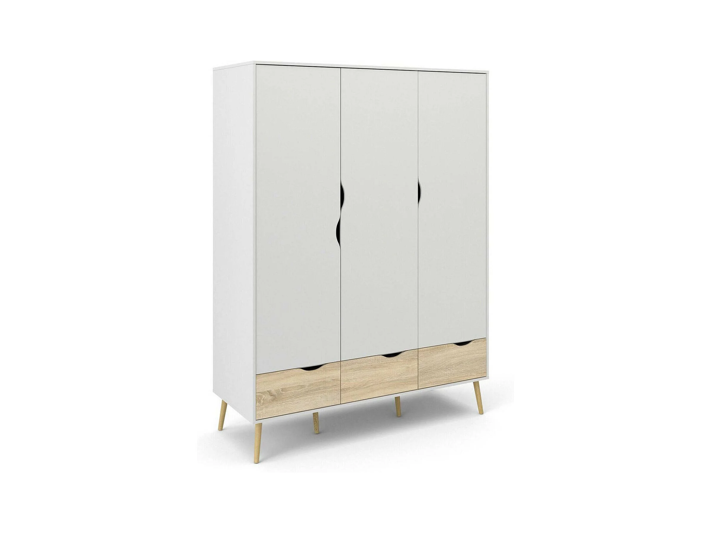 Garde-robe 3 portes Dselv, Meubles de chambre, Penderie de plain-pied, Placard à vêtements, 147x58 h200 cm, Blanc et chêne