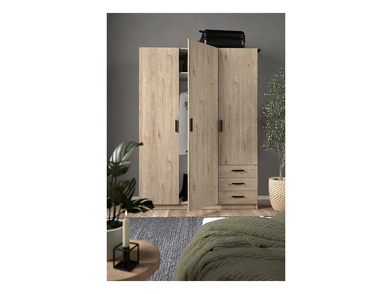Garde-robe 3 portes Dsenk, Meubles de chambre, Penderie de plain-pied, Placard à vêtements, 147x50 h200 cm, Chêne clair