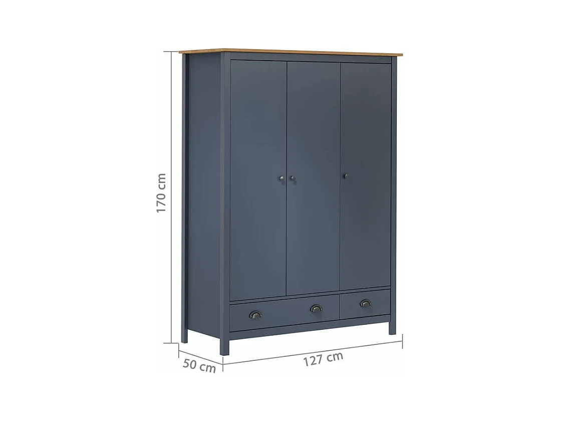 Garde-robe à 3 portes Hill Gris 127x50x170 Pin solide