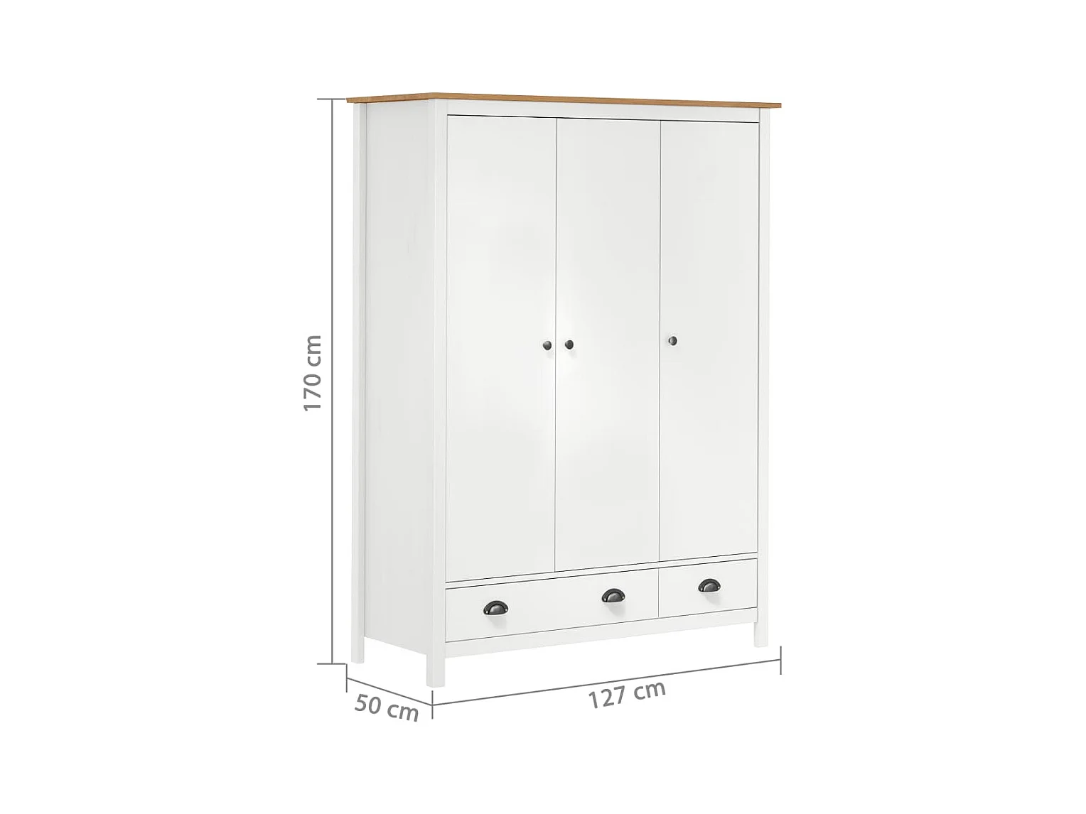 Garde-robe à 3 portes Hill Range Blanc 127x50x170 Pin solide