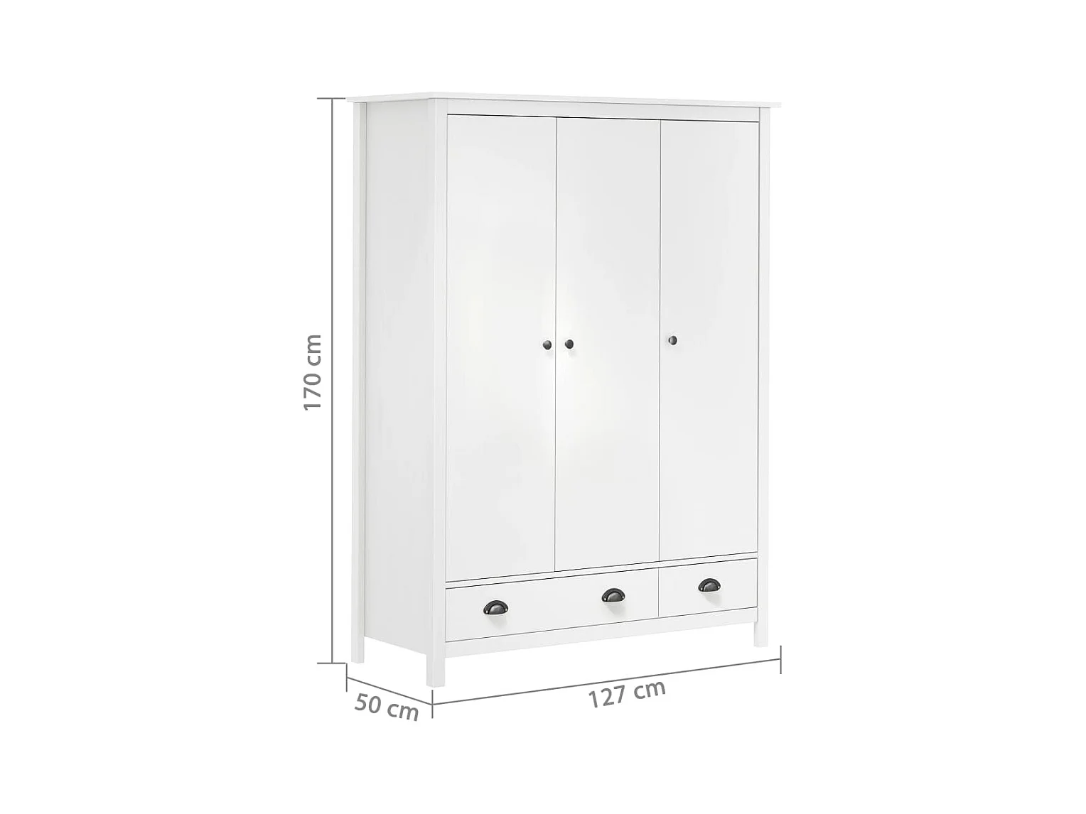 Garde-robe à 3 portes Hill Range Blanc 127x50x170 Pin solide 2