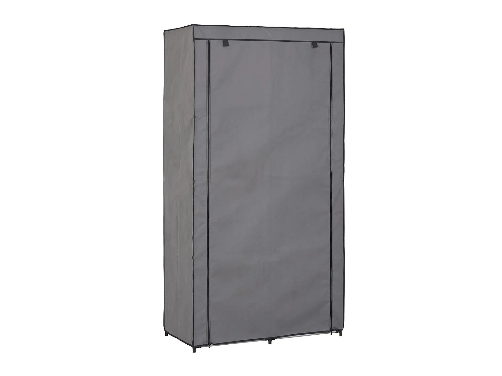 Garde-robe ADAM en tissu gris, avec 2 tringles à vêtements et 3 étagères