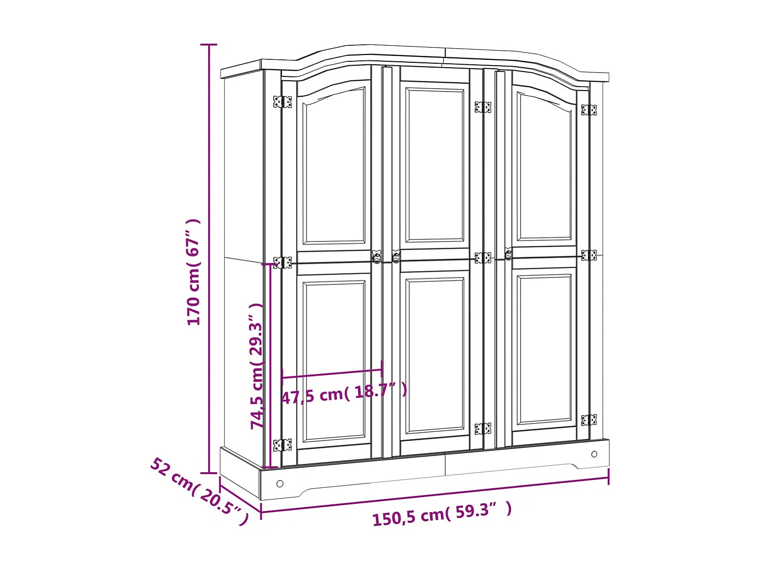 Garde-robe avec 3 portes Gamme Corona pin mexicain