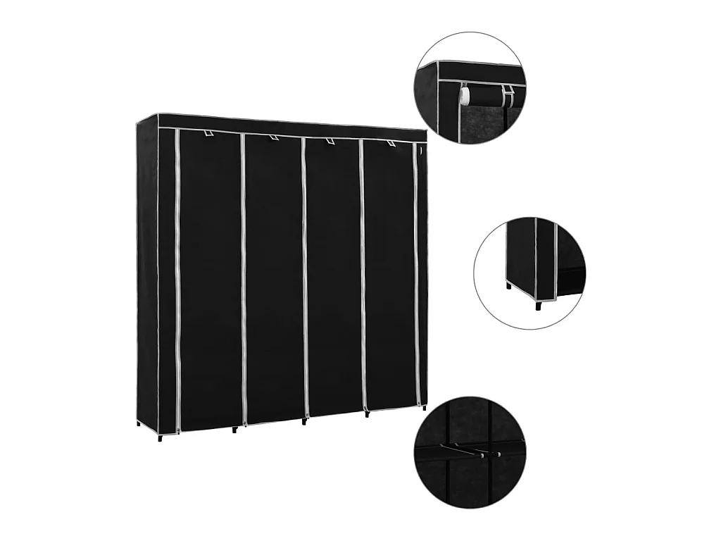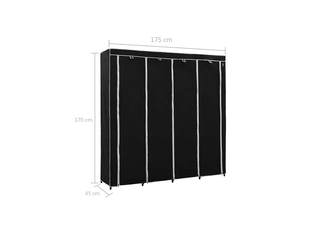 Garde-robe avec 4 compartiments Noir 175x45x170