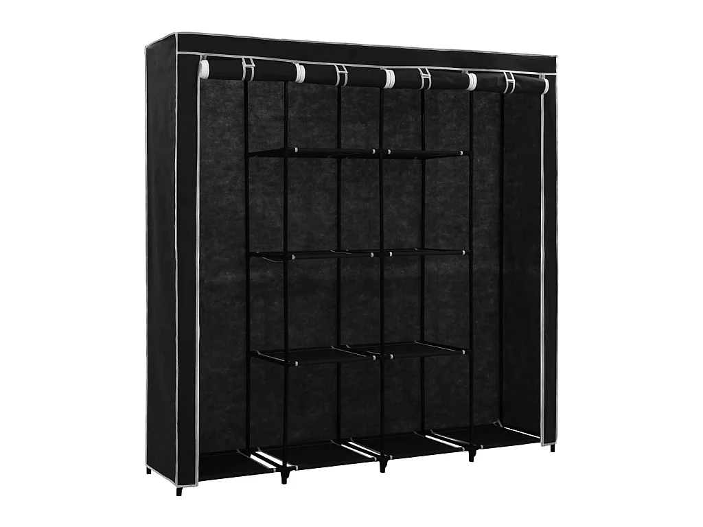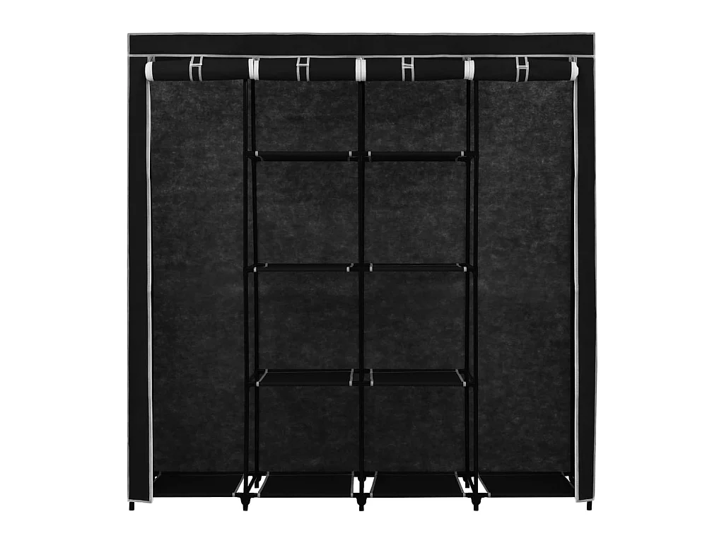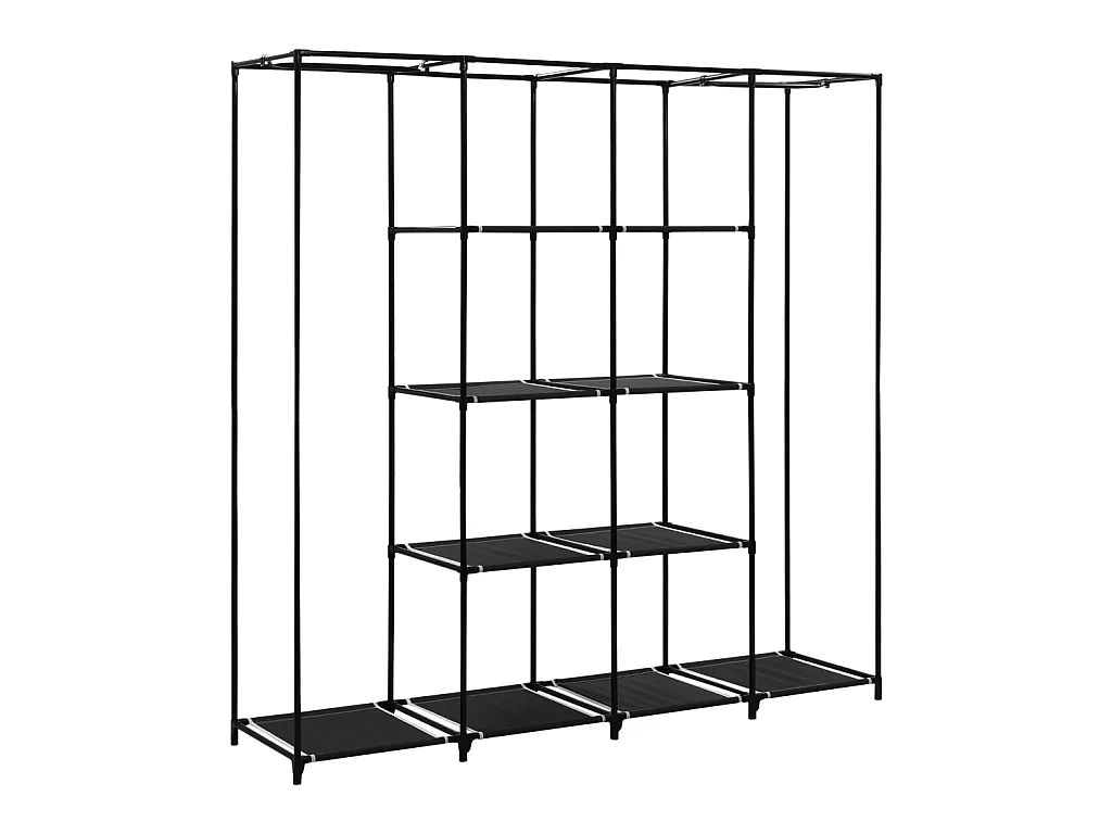 Armoire modulable avec 2 penderies et 5 tablettes en tissu et métal - Noir - H 169 x L 88 x P 46 cm