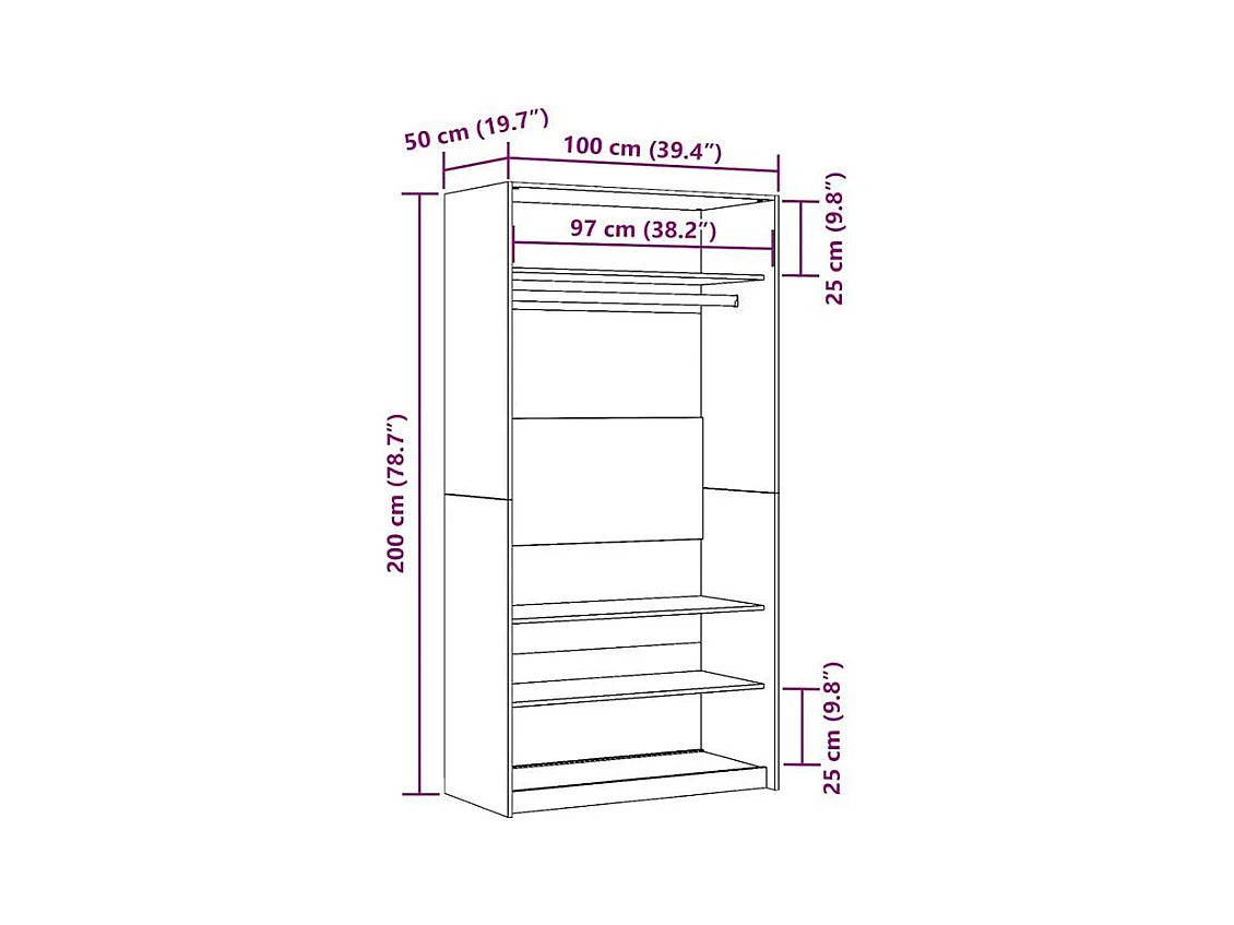 Armoire dressing 1 penderie 3 étagères 100cm - Collection Klozer-Blanc