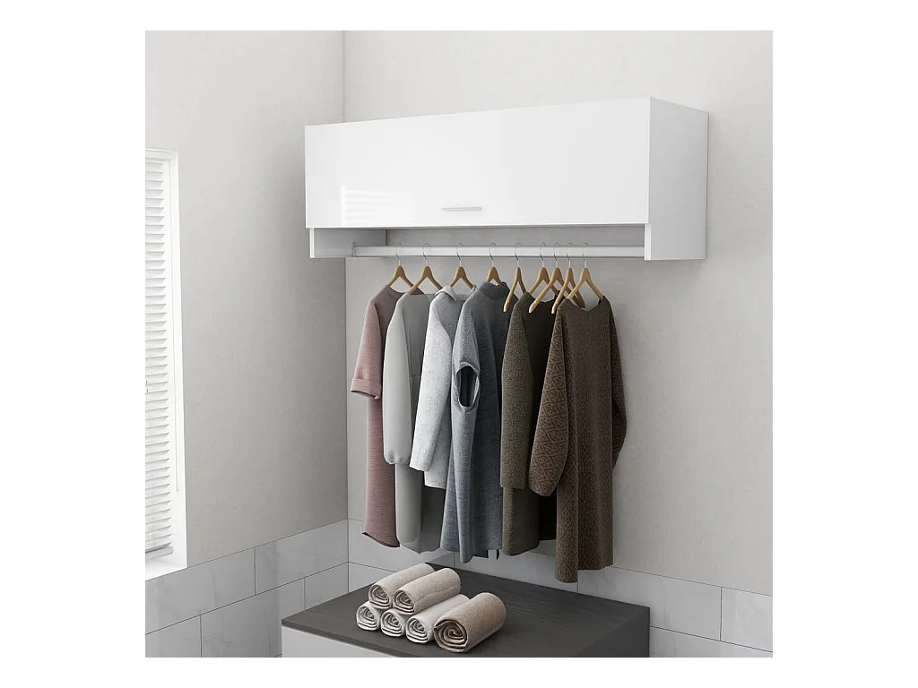 Prego armoire de rangement 1 porte, 1 barre de suspension brillant blanc,blanc.