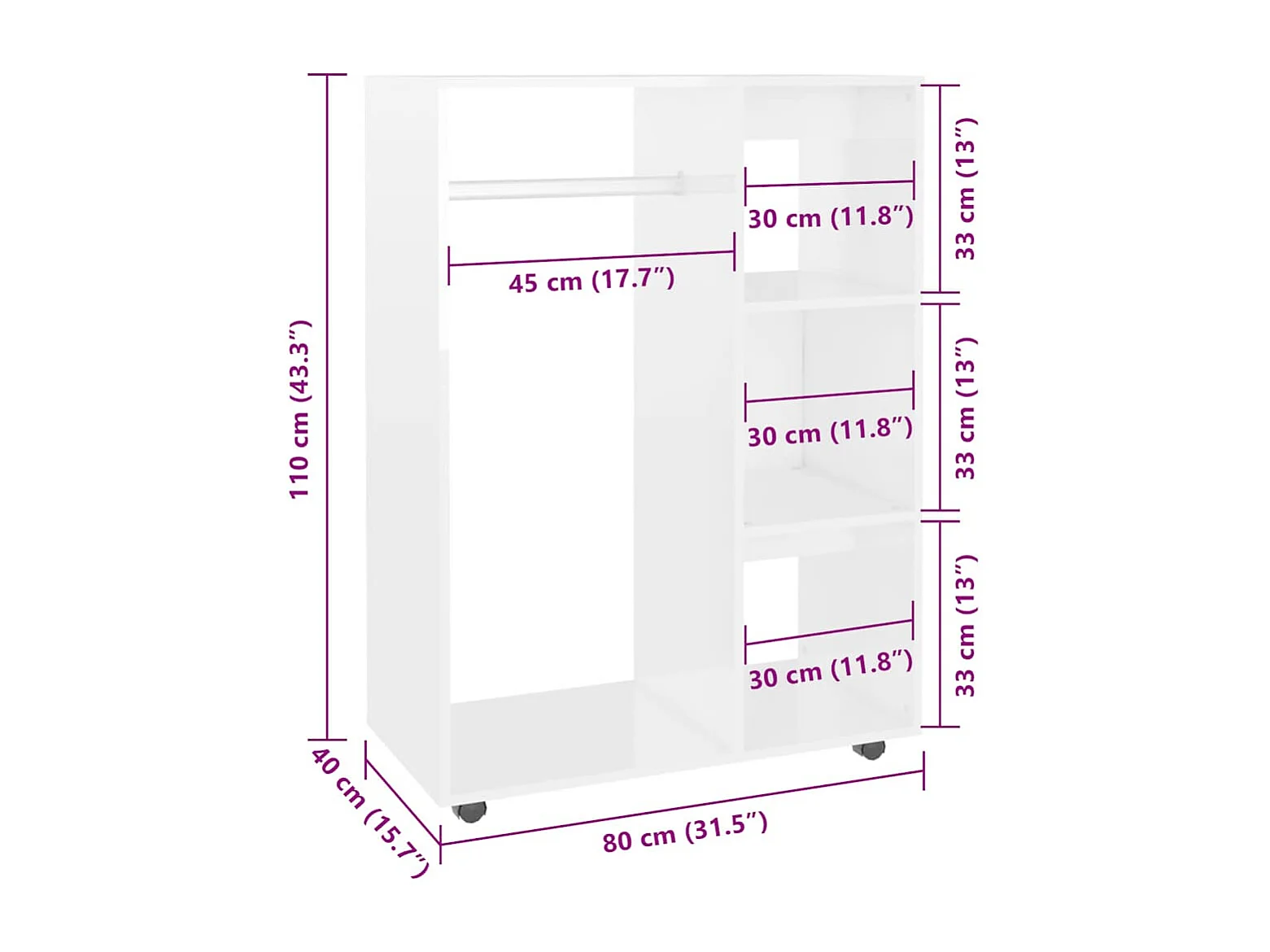 Garde-robe Blanc brillant 80x40x110 cm Bois d’ingénierie