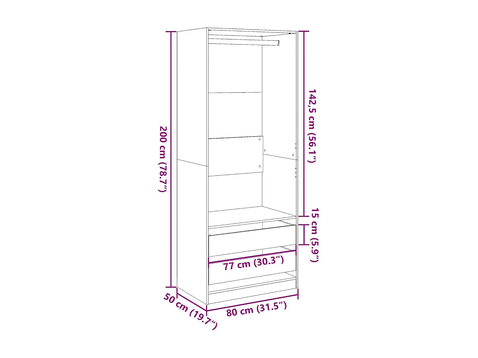 Garde-robe chêne marron 80x50x200 cm bois d'ingénierie