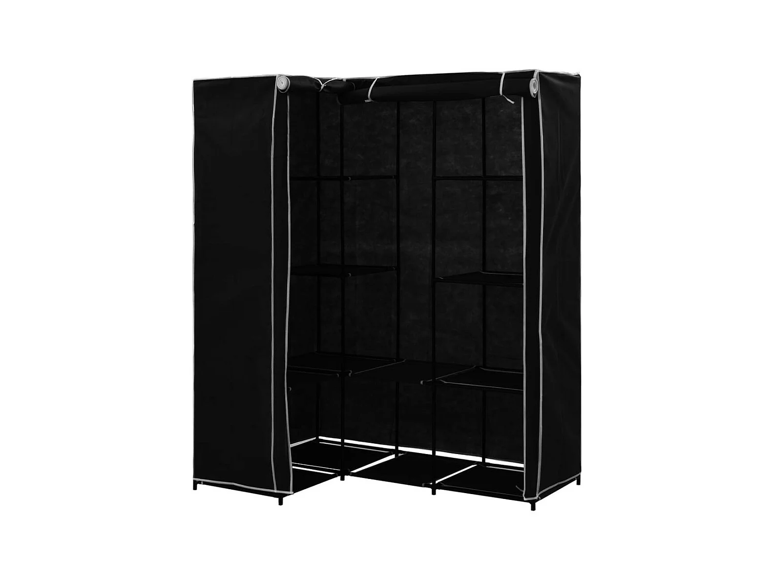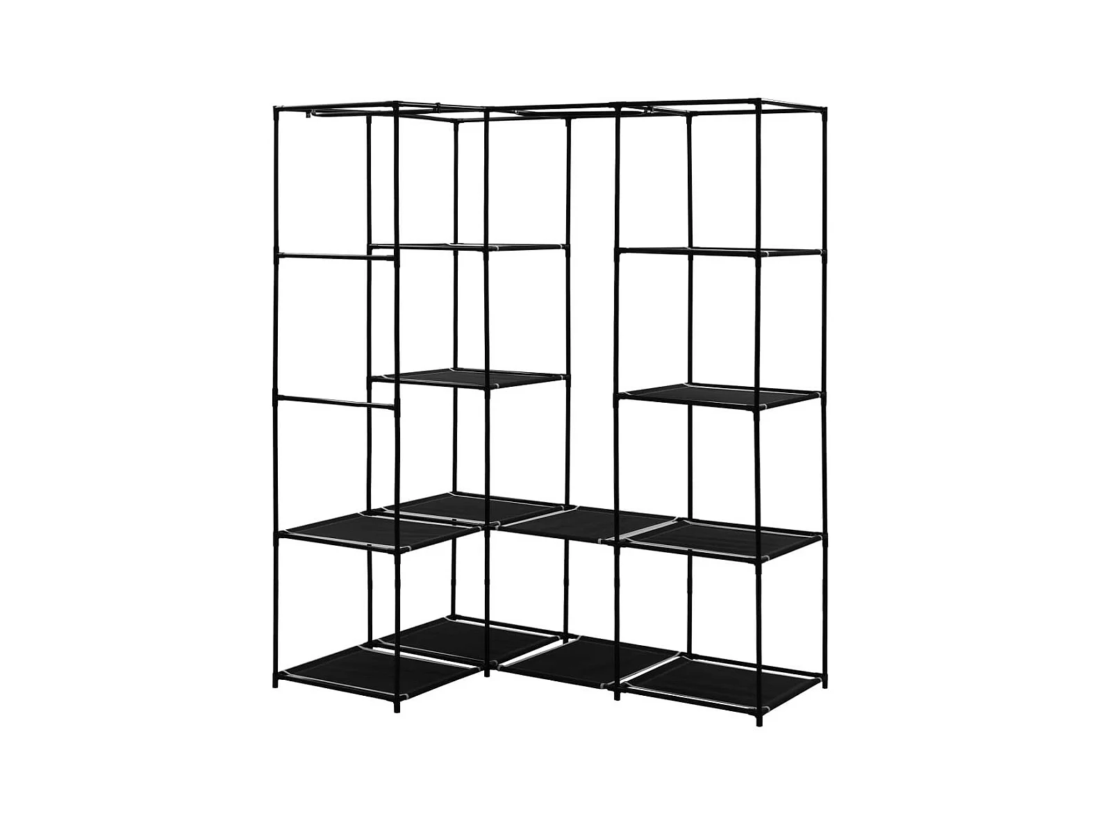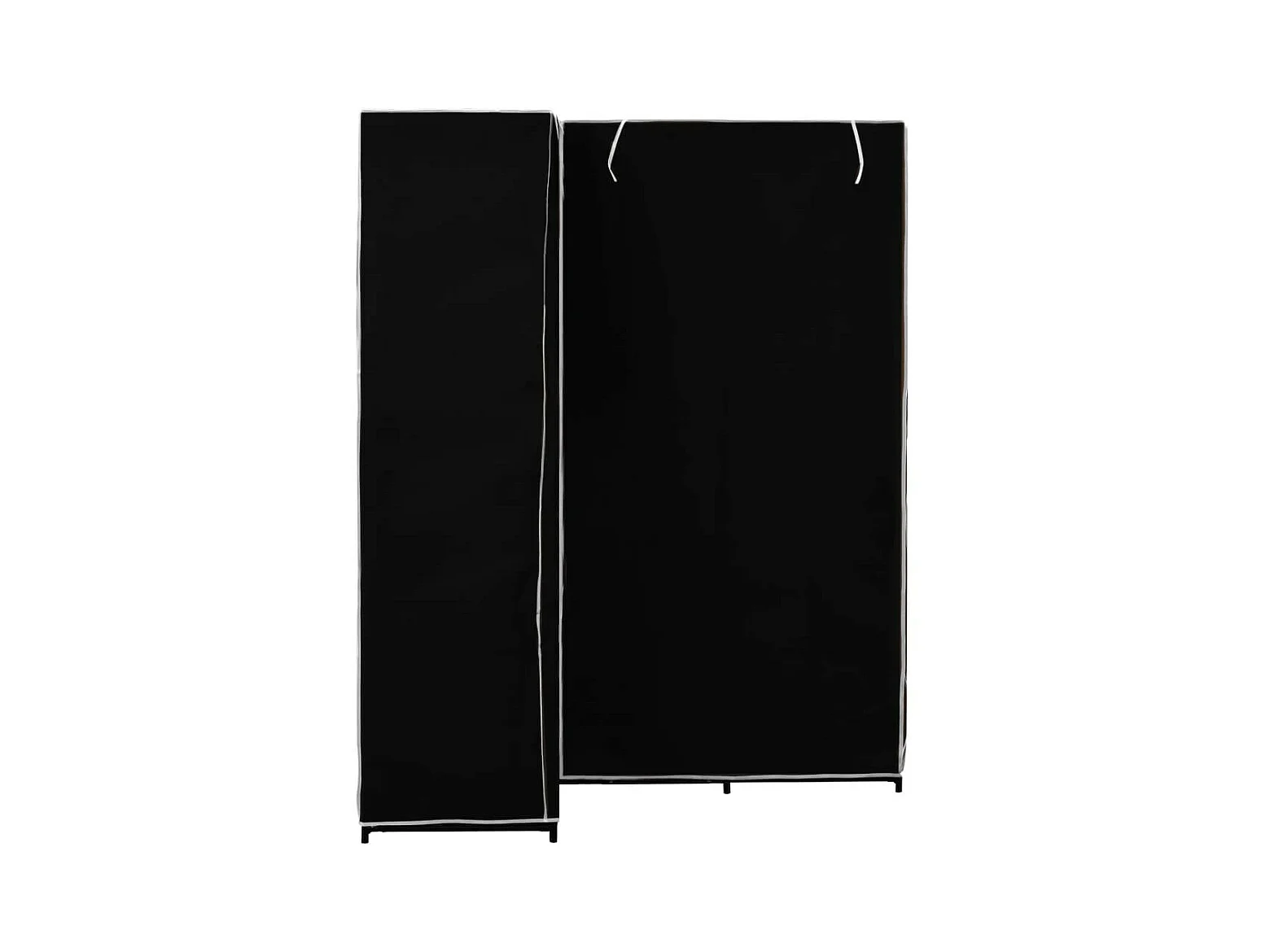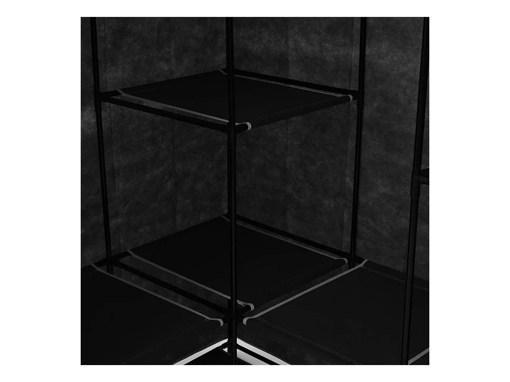 Armoire modulable avec 2 penderies et 5 tablettes en tissu et métal - Noir - H 169 x L 88 x P 46 cm