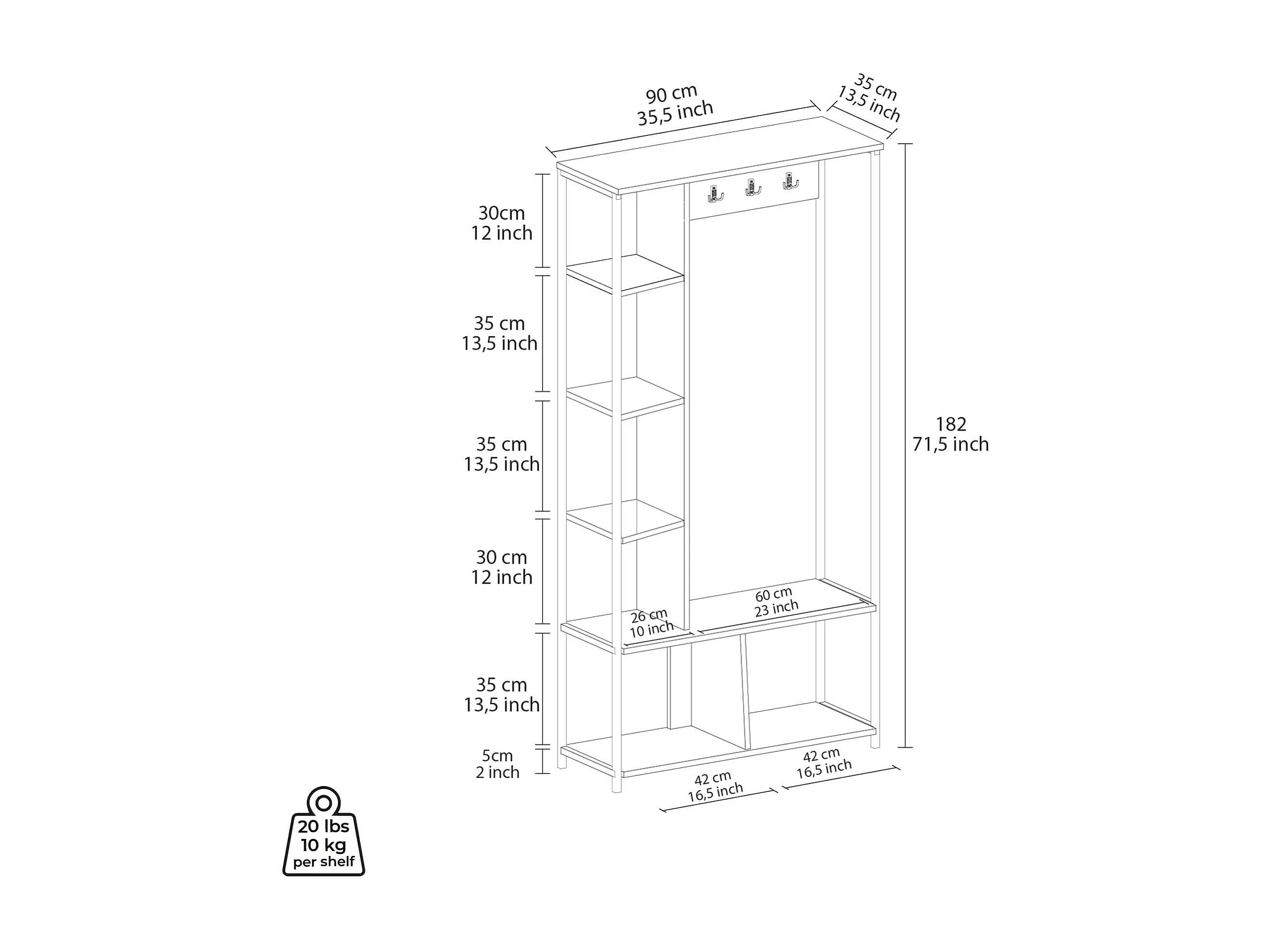 Garde-Robe d'Entrée Olearia 182x90x35 Panneau de particules Acier Marron Clair Gris Foncé Moderne