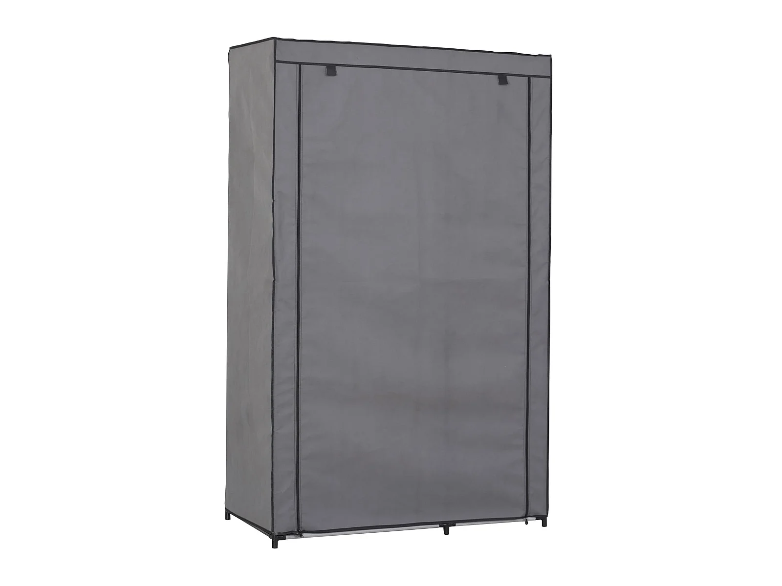 Garde-robe ADAM en tissu gris, avec 2 tringles à vêtements et 3 étagères