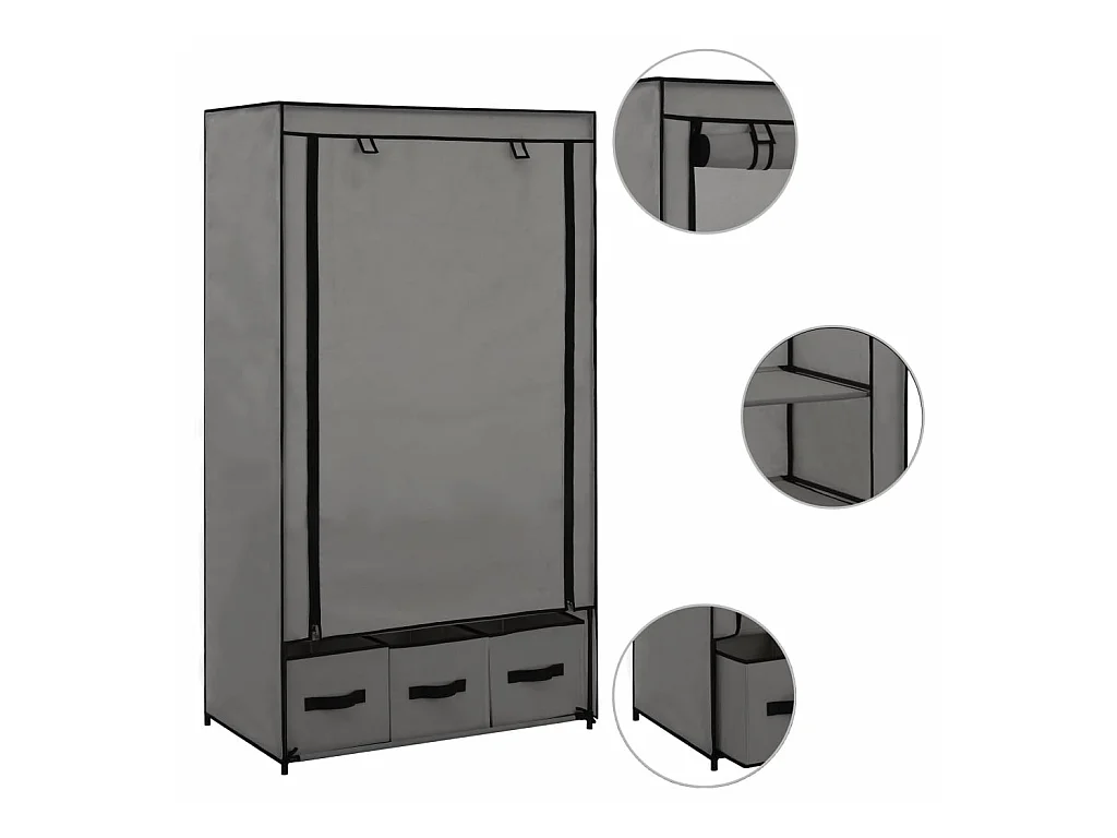Garde-robe à 3 niveaux Gris 110 x 40x170 Tissu