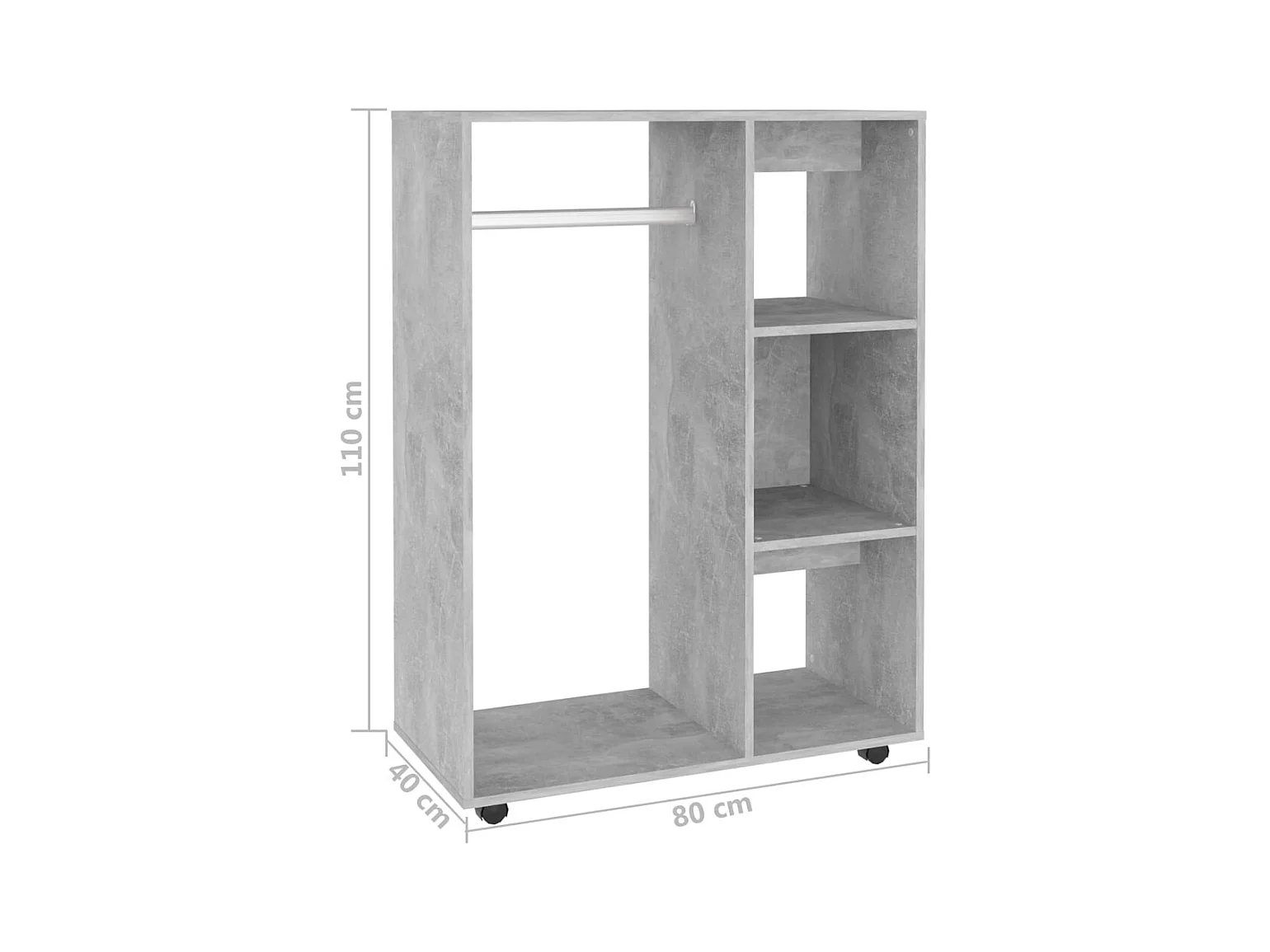 Petite armoire dressing sur roulette 1 penderie 3 étagères 80cm - Collection Event-Gris béton