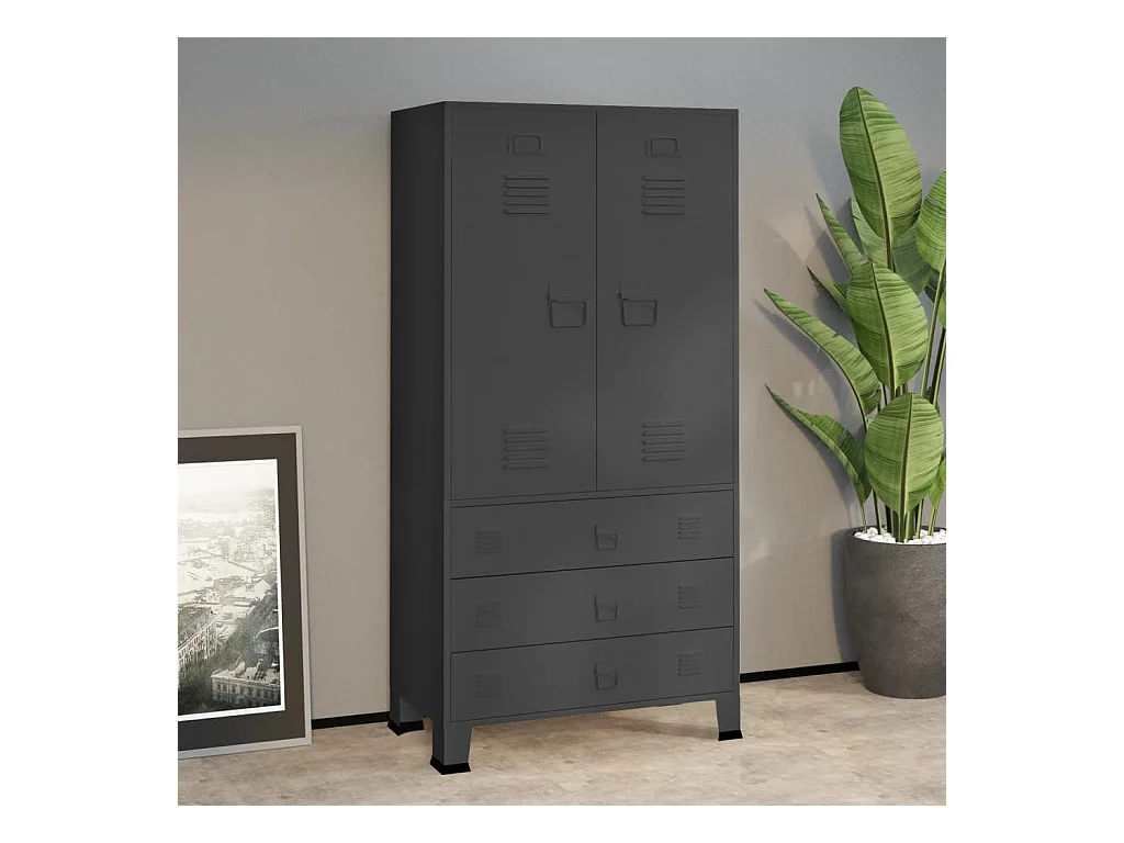 Garde-robe industrielle Anthracite 90x50x180 Métal