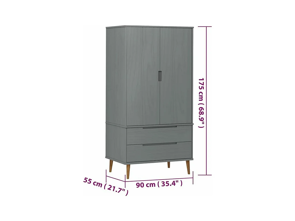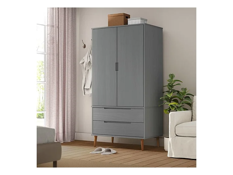 Garde-robe MOLDE Gris 90x55x175 Bois massif de pin