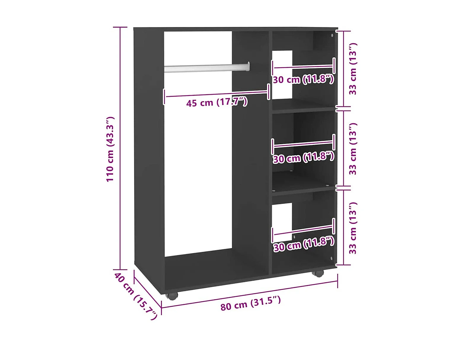 Garde-robe Noir 80x40x110 cm Bois d’ingénierie