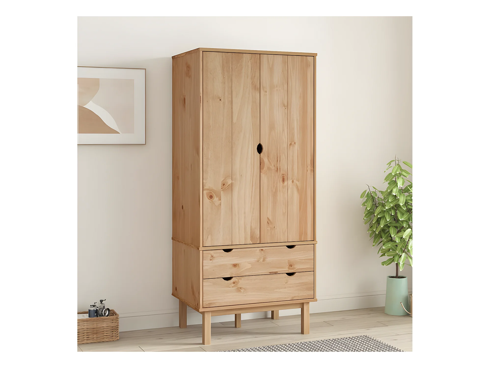 Garde-robe OTTA 76,5x53x172 cm Bois massif de pin OFR26650 BonneVie Meuble