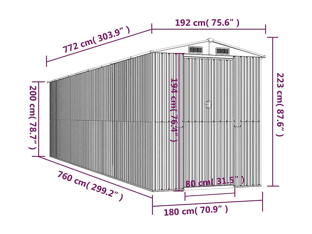 Garden Furniture - Abri de jardin Anthracite 192x772x223 cm Acier galvanisé