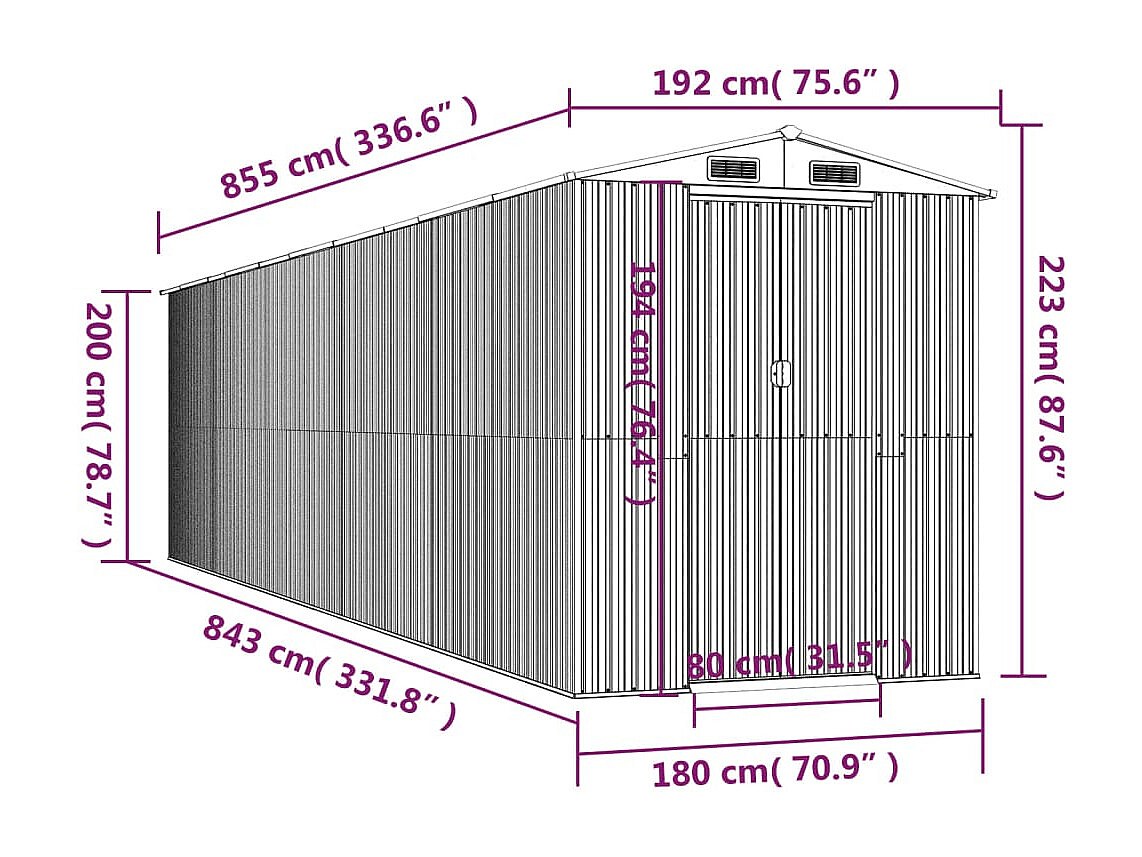 Garden Furniture - Abri de jardin Anthracite 192x855x223 cm Acier galvanisé