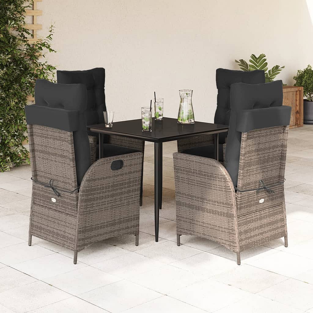 Garden Furniture - Ensemble à manger de jardin 5 pcs coussins gris résine tressée