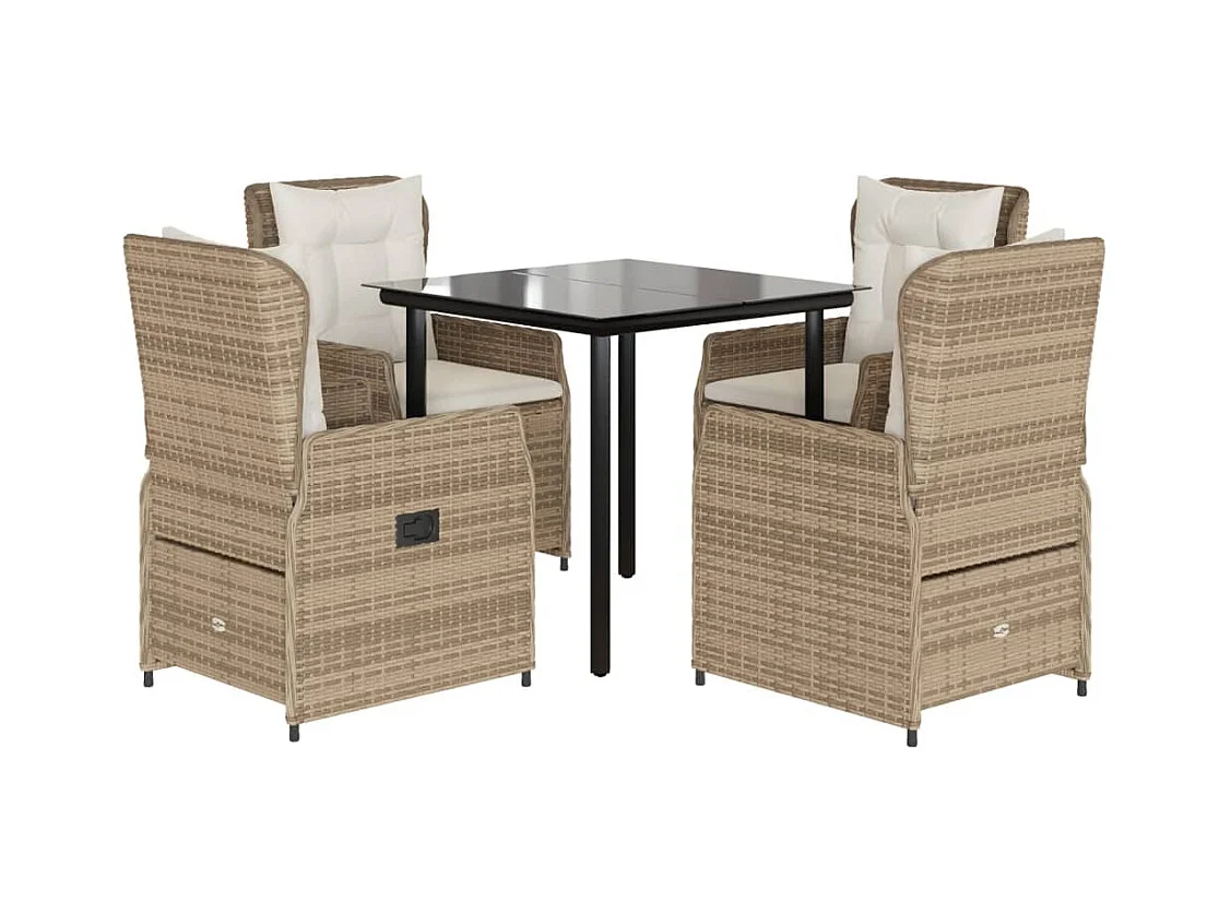 Garden Furniture - Ensemble à manger de jardin avec coussins 5pcs Beige poly rotin